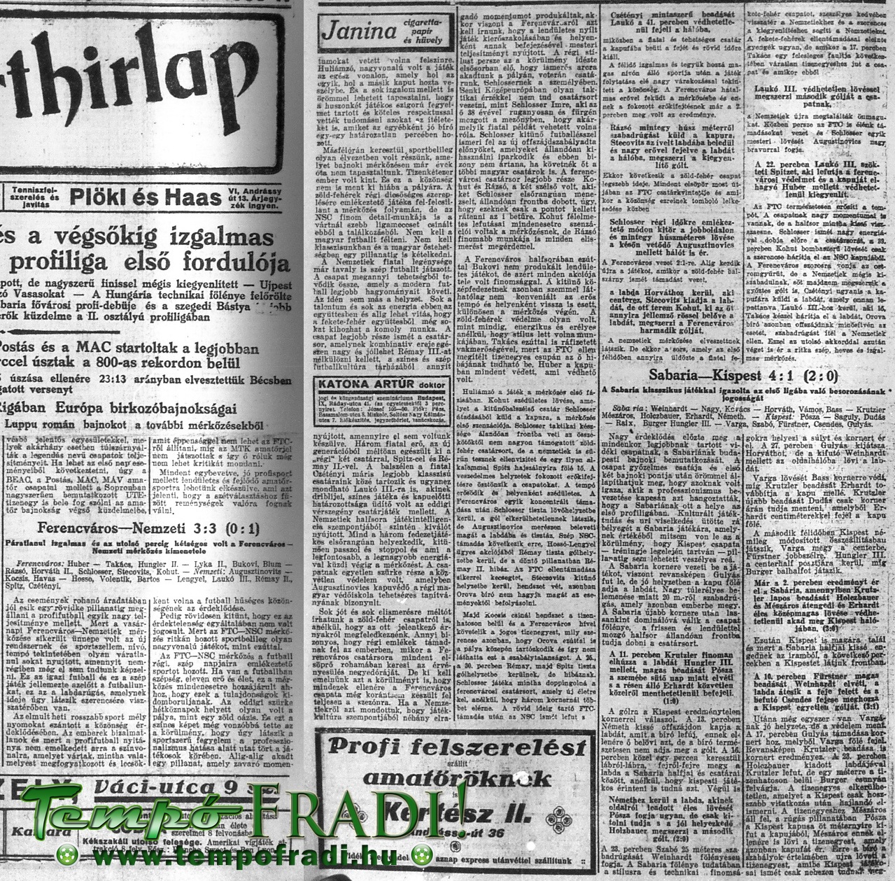 1926.IX.5. Nemzeti – Ferencváros 3:3 Közzétéve: 2009. január 26. hétfő | Szerző: mjozef22 Az 1:0-ra vezető Nemzeti hat perc alatt három gólt kapott, de nagyszerű finissel mégis kiegyenlített Vélemény, hozzászólás? Válasz megszakításaAz e-mail címet nem tesszük közzé. A kötelező mezőket * karakterrel jelöltük Hozzászólás * Név * E-mail cím * Honlap Δ