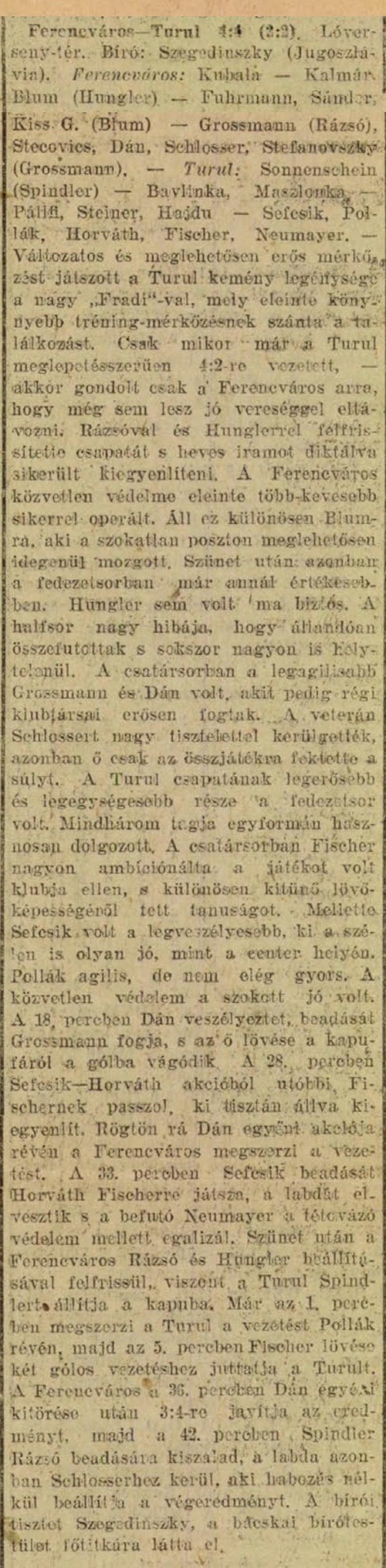 1926.XII.19. Ferencváros – Turul 4:4 (edzőmérkőzés)