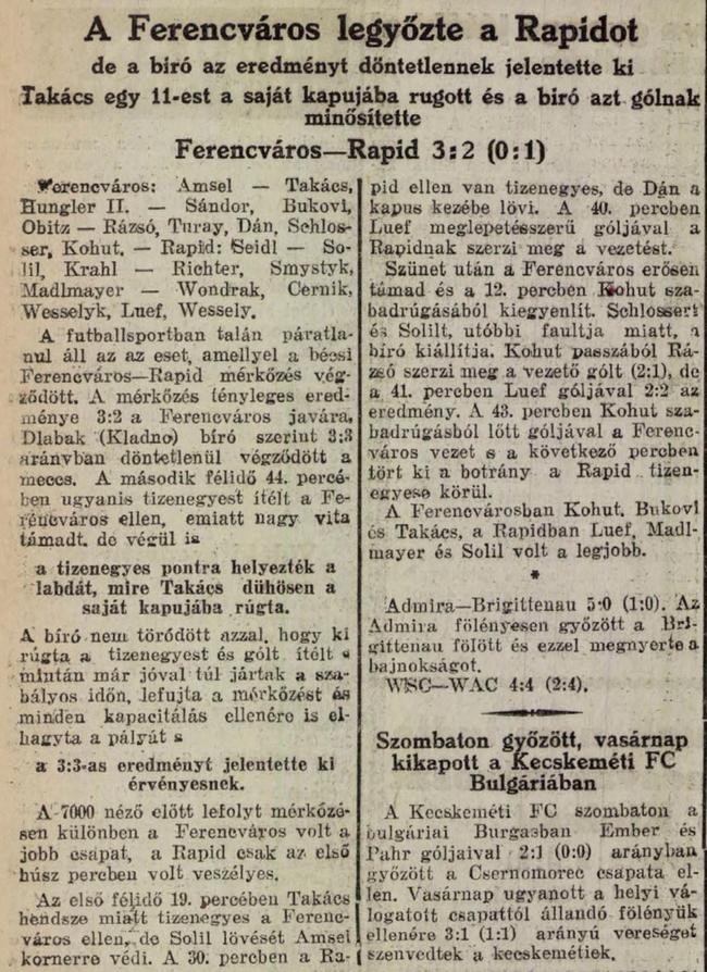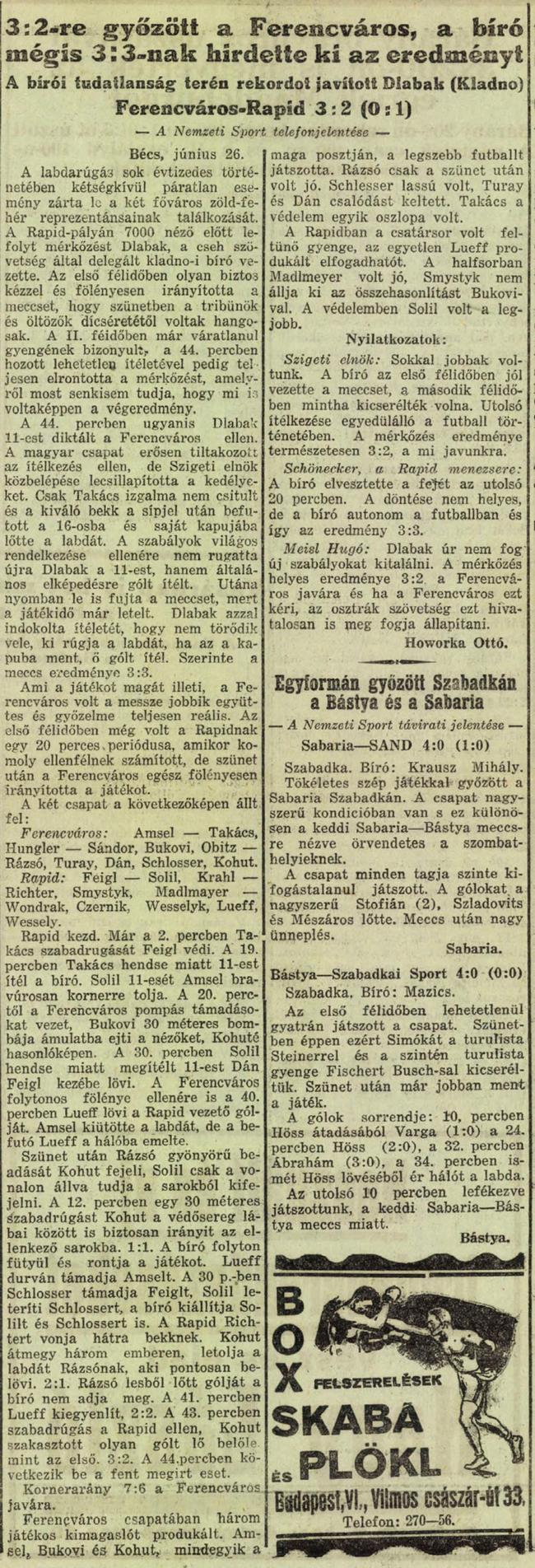 Kategória: 1926/27 | Címke: 1926/27, Kohut Vilmos, nemzetközi mérkőzés, Rapid, Rázsó Mór, zöldasztalnál eldőlt mérkőzés