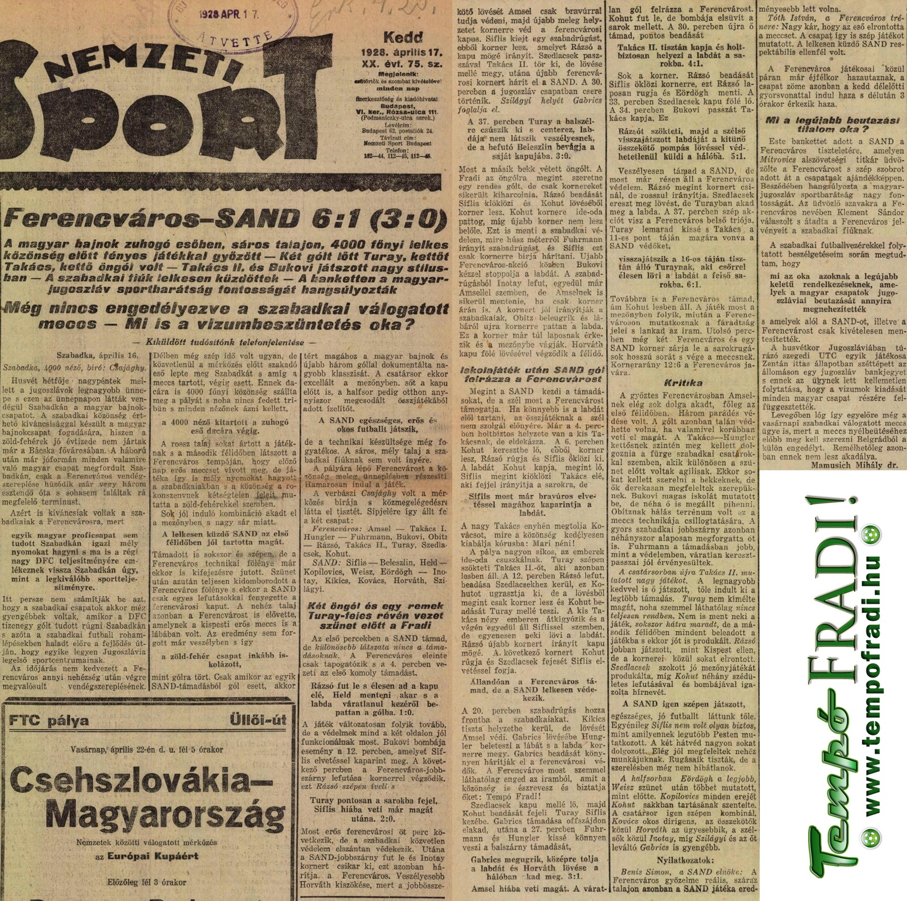 Kategória: 1927/28 | Címke: 1927/28, nemzetközi mérkőzés, öngól, Rázsó Mór, SAND, Siflis Géza, Takács II. József, Turay József