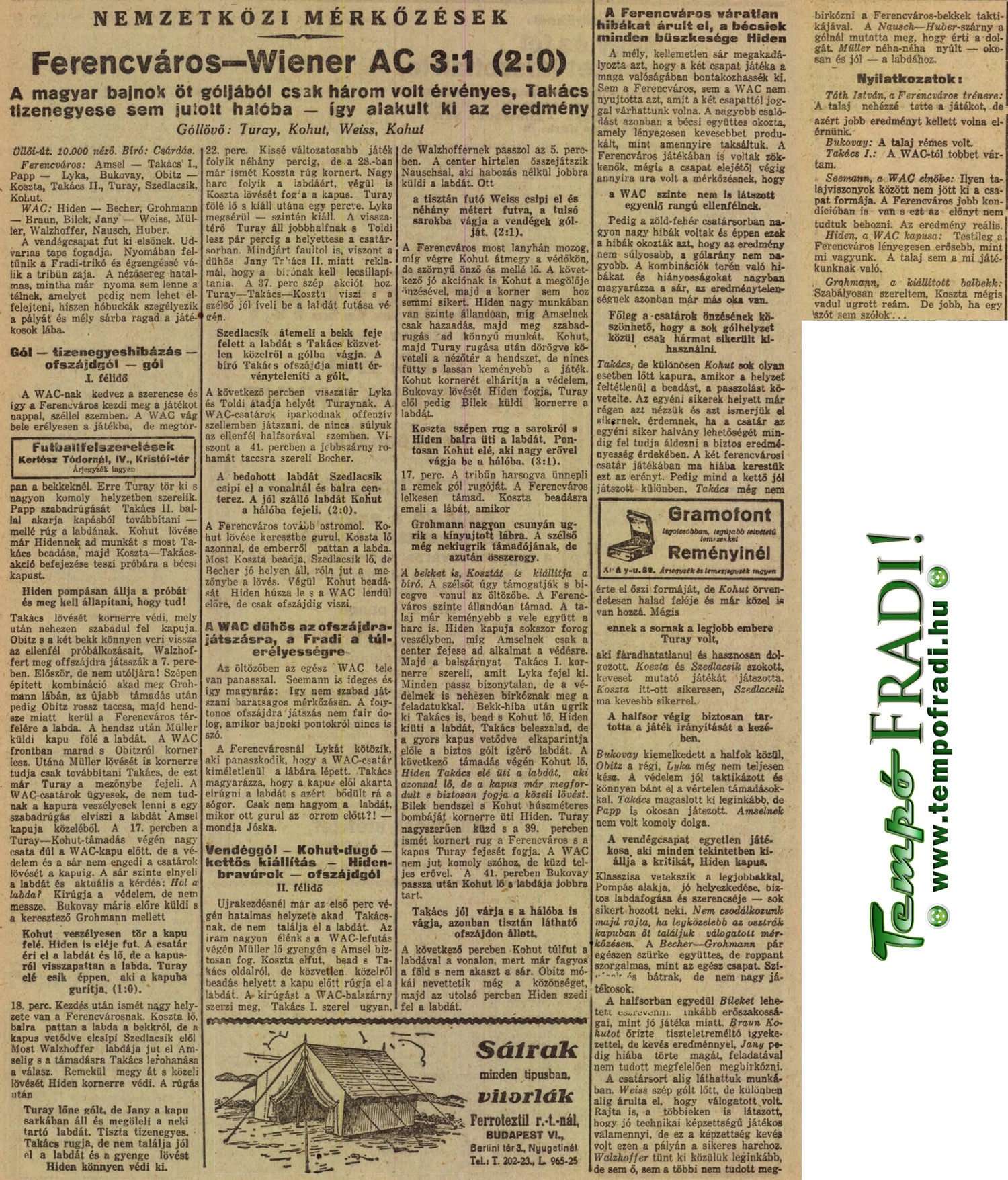1929.III.10. Ferencváros – Wiener AC 3:1