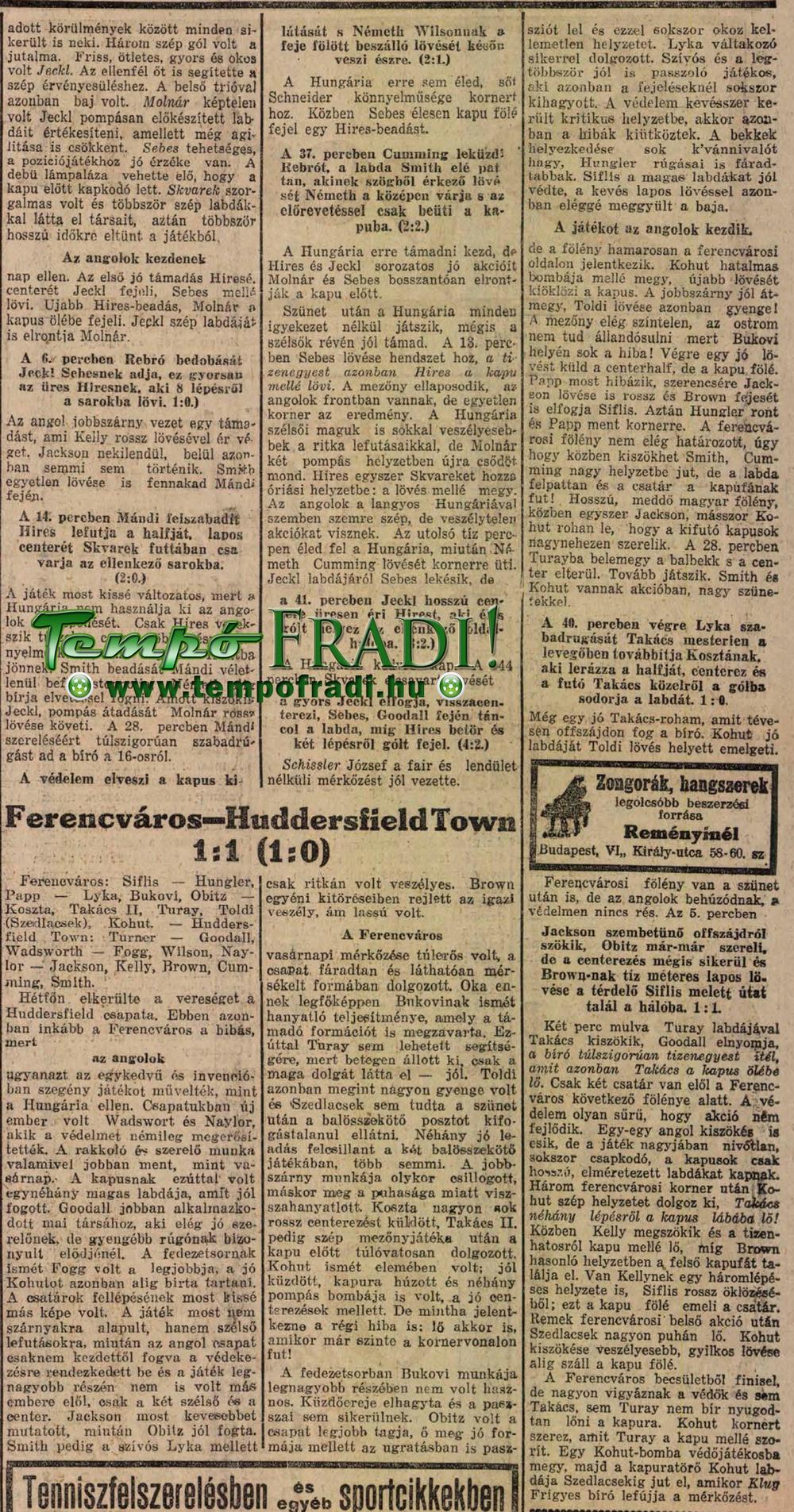 1929.V.20. Ferencváros – Huddersfield Town 1:1 Közzétéve: 2009. január 29. csütörtök | Szerző: K@rcsi 1929 Turner, az angol kapus kiöklözi Koszta kornerét Turay elől Vélemény, hozzászólás? Válasz megszakításaAz e-mail címet nem tesszük közzé. A kötelező mezőket * karakterrel jelöltük Hozzászólás * Név * E-mail cím * Honlap Δ