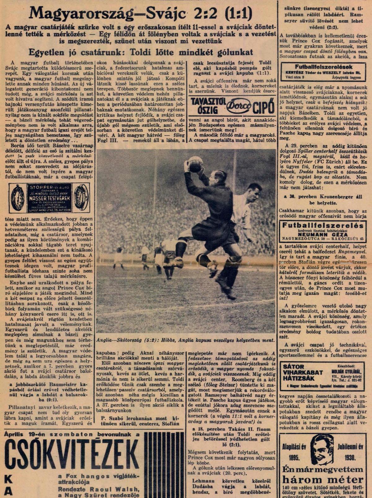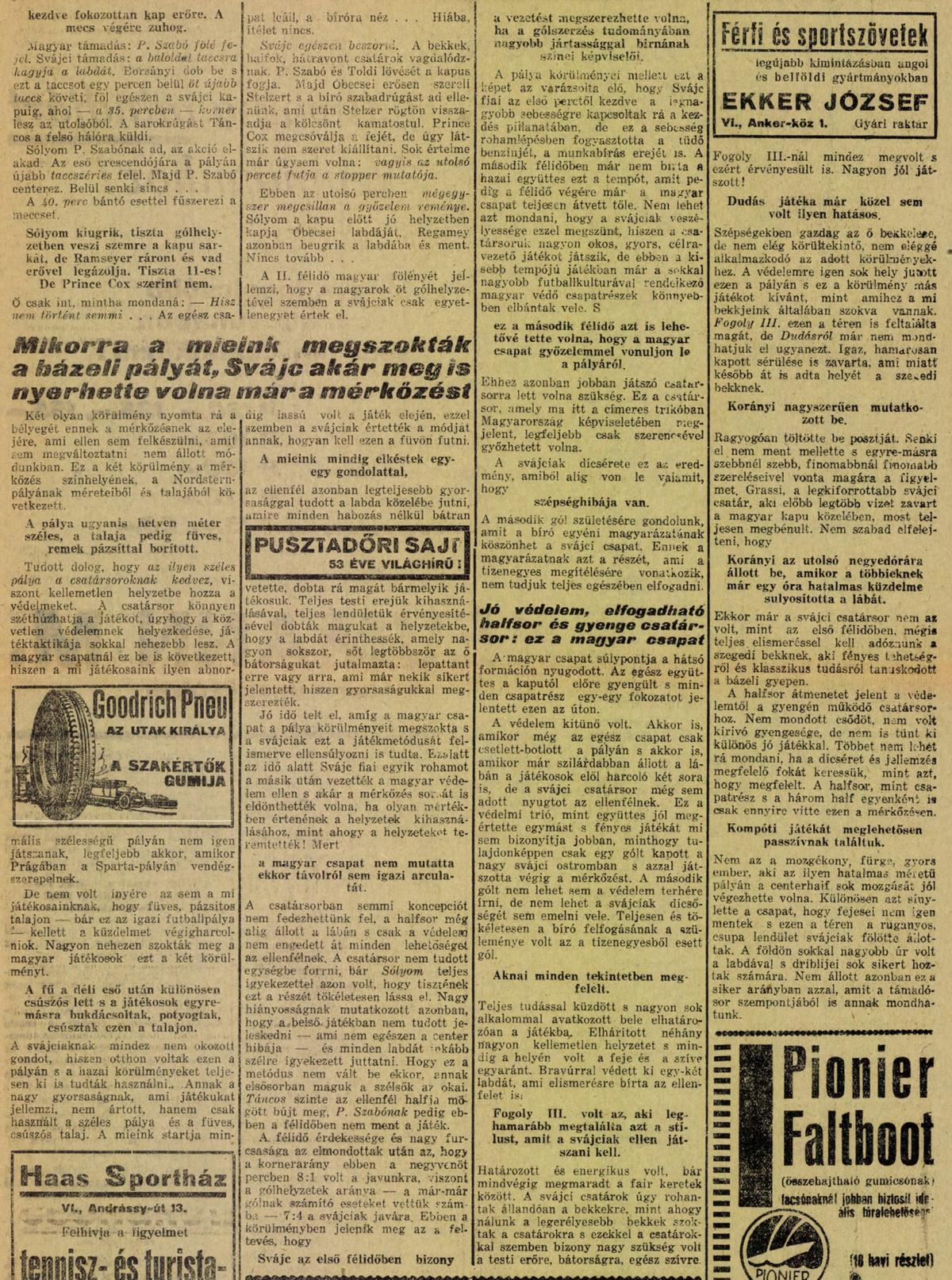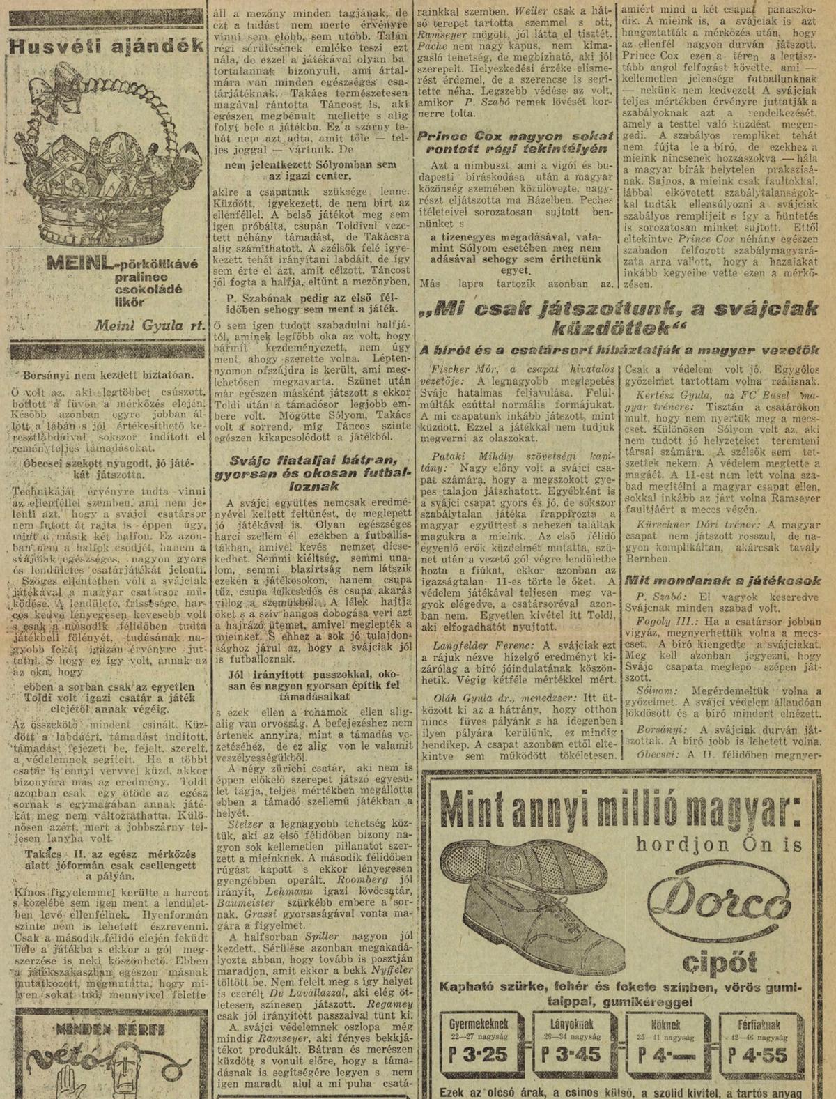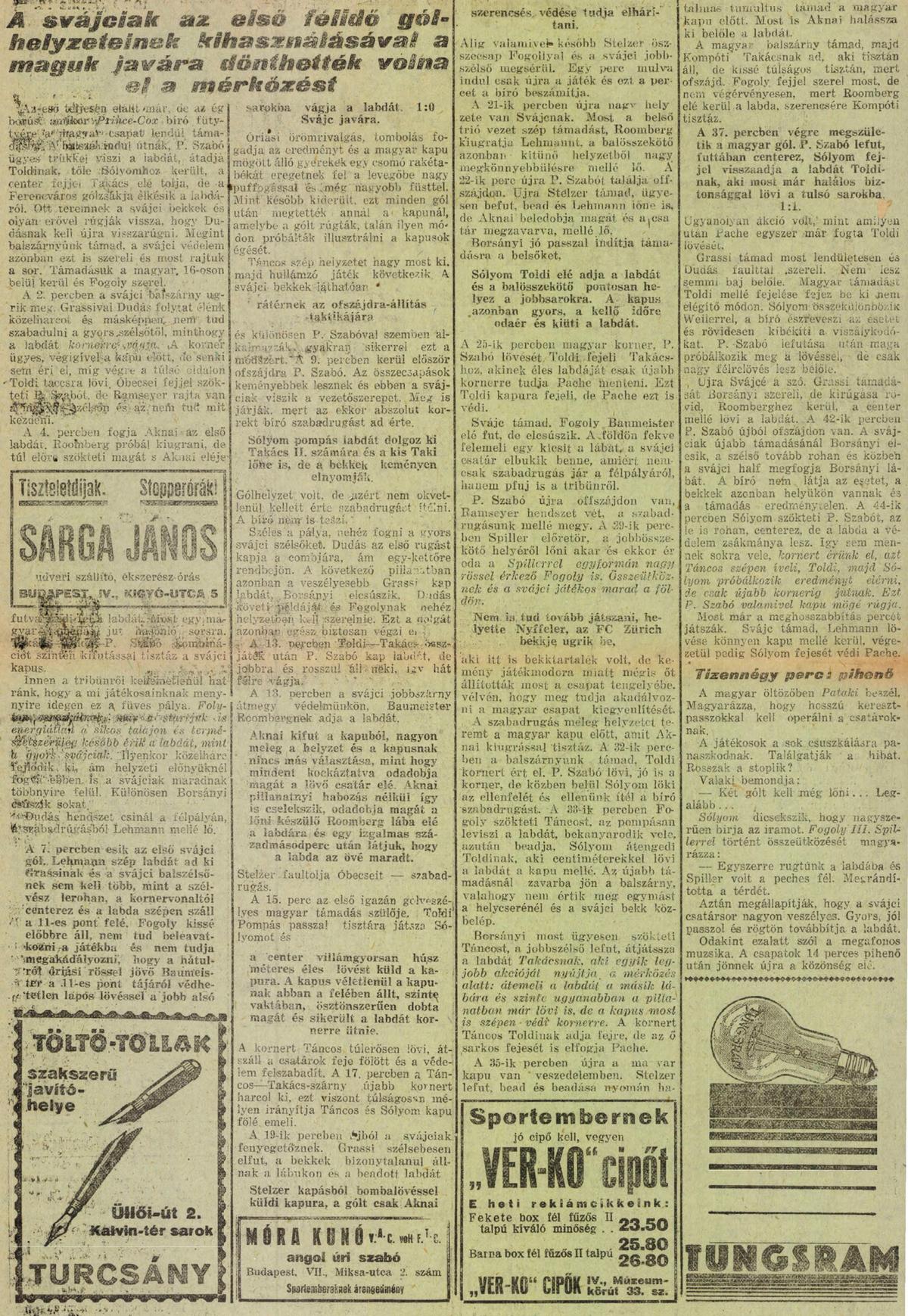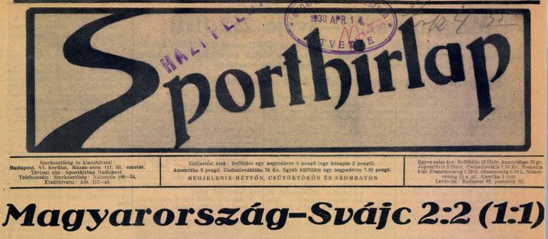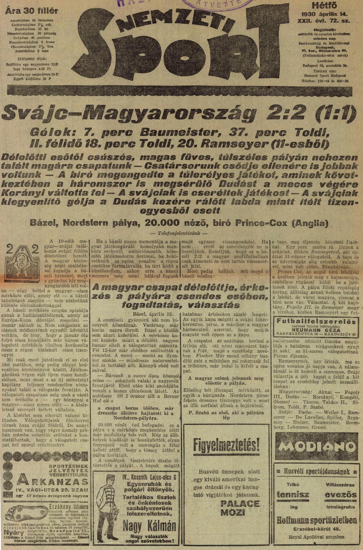 1930. április 13. SVÁJC—MAGYARORSZÁG 2:2 (1:1)
