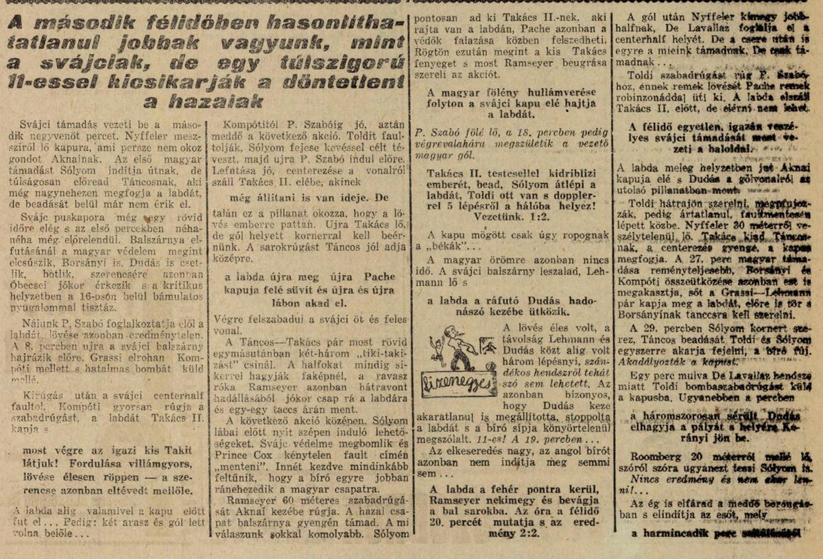 Góllövő: Baumeister (7.), Ramseyer (65. – 11-esből) ill. Toldi (37., 63.)