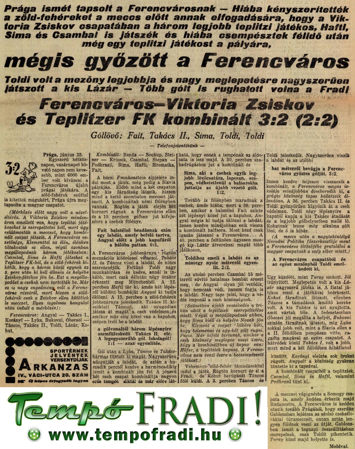 1930.VI.23. Viktoria Ziskov, FK Teplitzer kombinált – Ferencváros 2:3