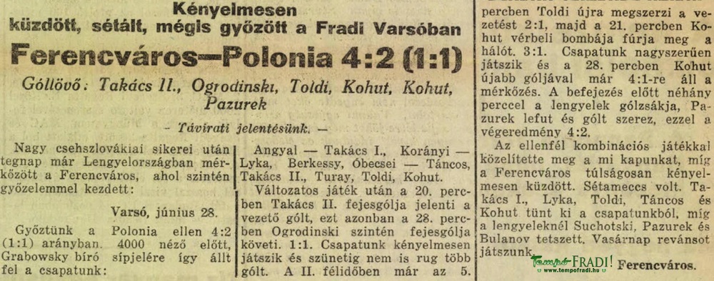 Kategória: 1929/30 | Címke: 1929/30, Kohut Vilmos, nemzetközi mérkőzés, Polonia Warszava, Takács II. József, Toldi Géza