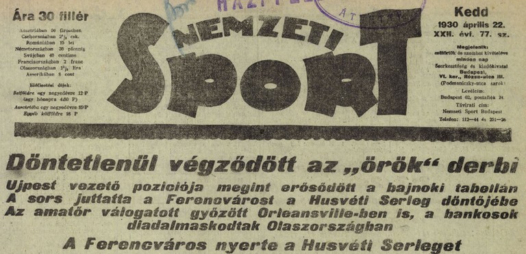 1930.IV.21. Húsvéti serleg, Ferencváros – Újpest 2:0