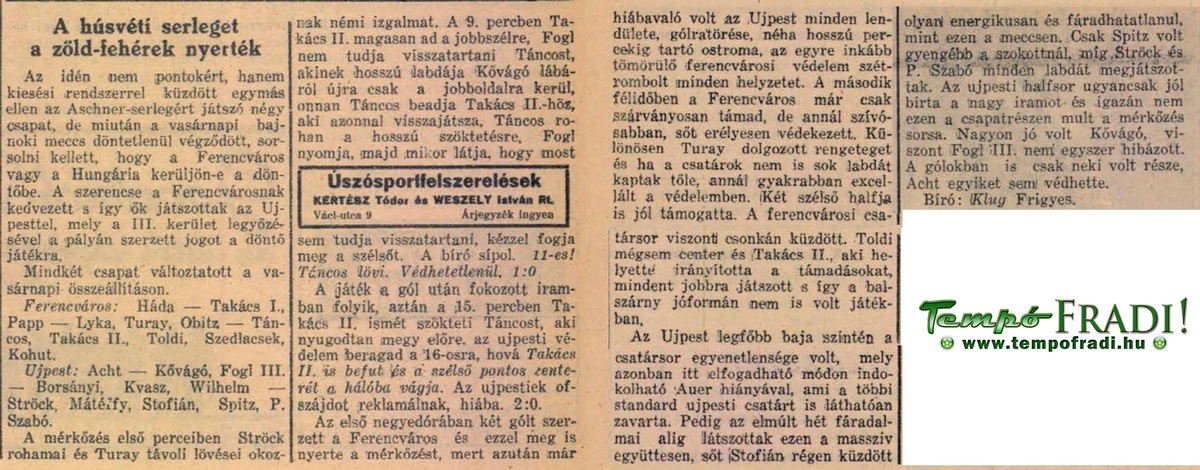 Kategória: 1929/30 | Címke: 1929/30, Húsvéti serleg, Szedlacsek Ferenc, Takács II. József, Táncos Mihály, Újpest (Újpesti Dózsa; Bp. Dózsa; UTE)