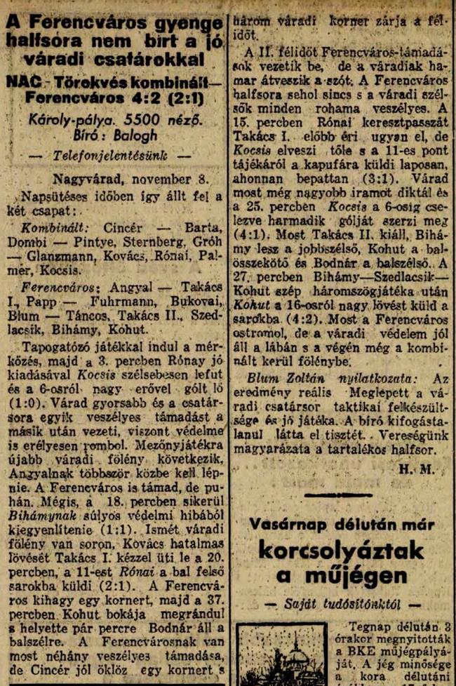 1931.XI.8. NAC, N. Törekvés kombinált – Ferencváros 4:2