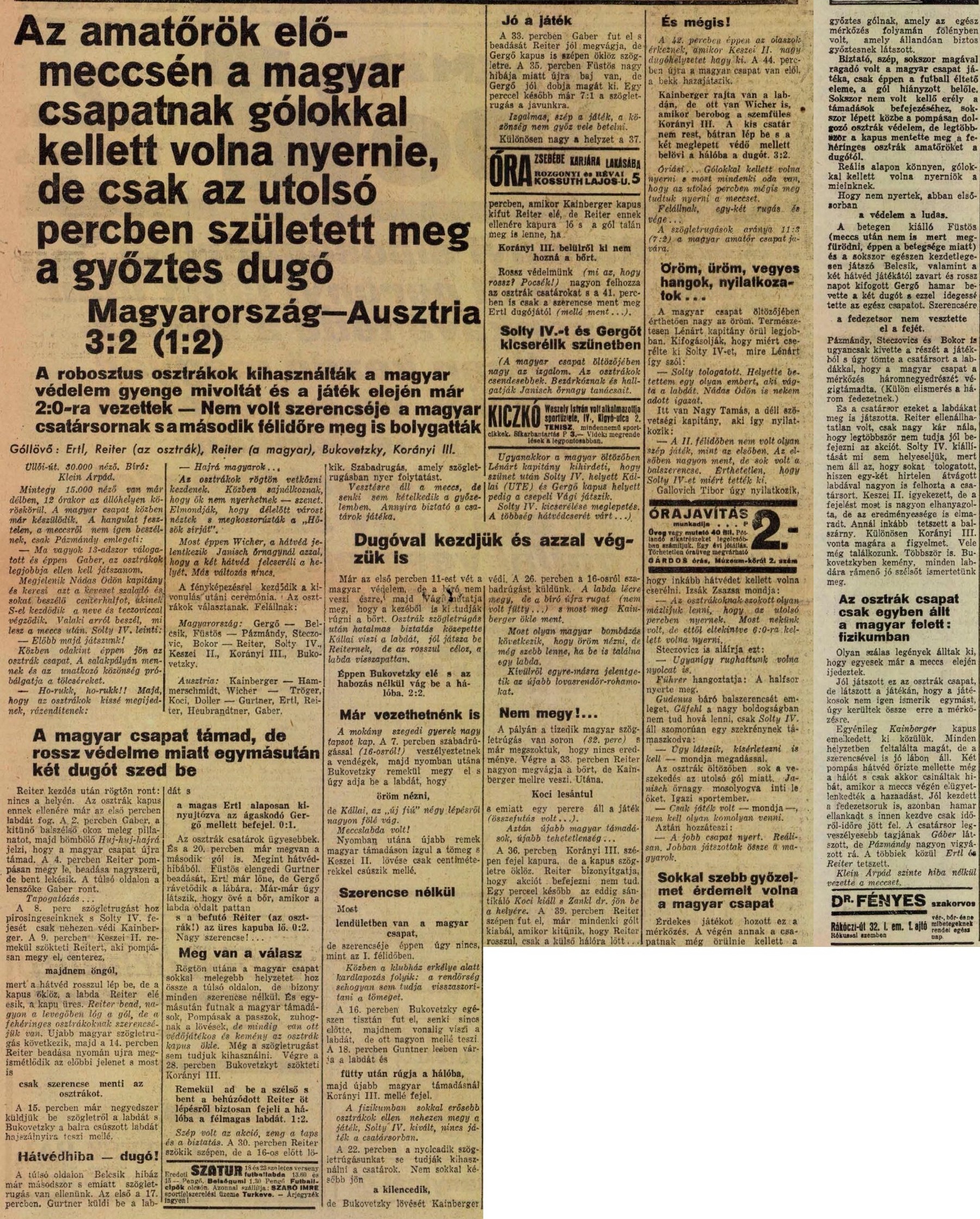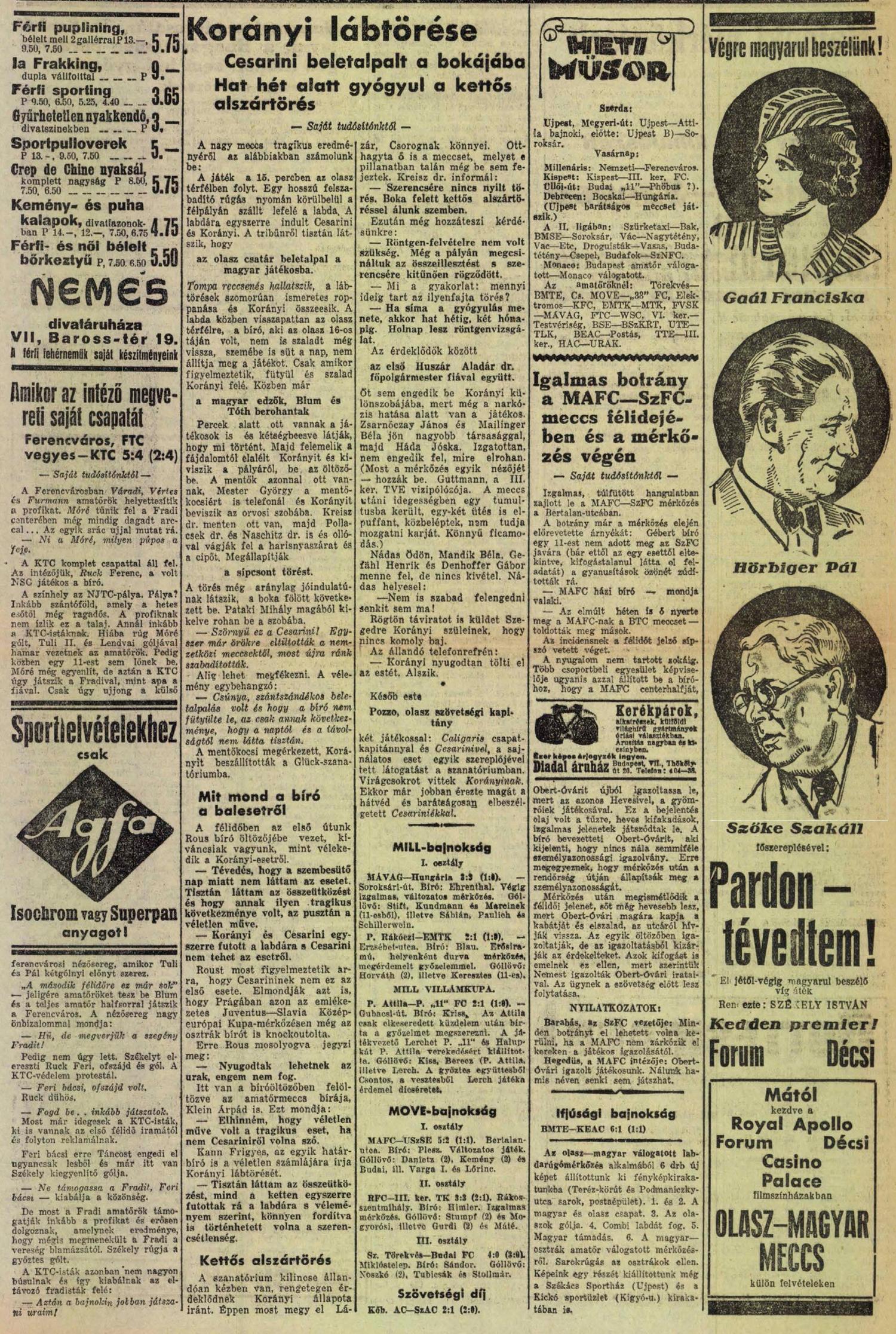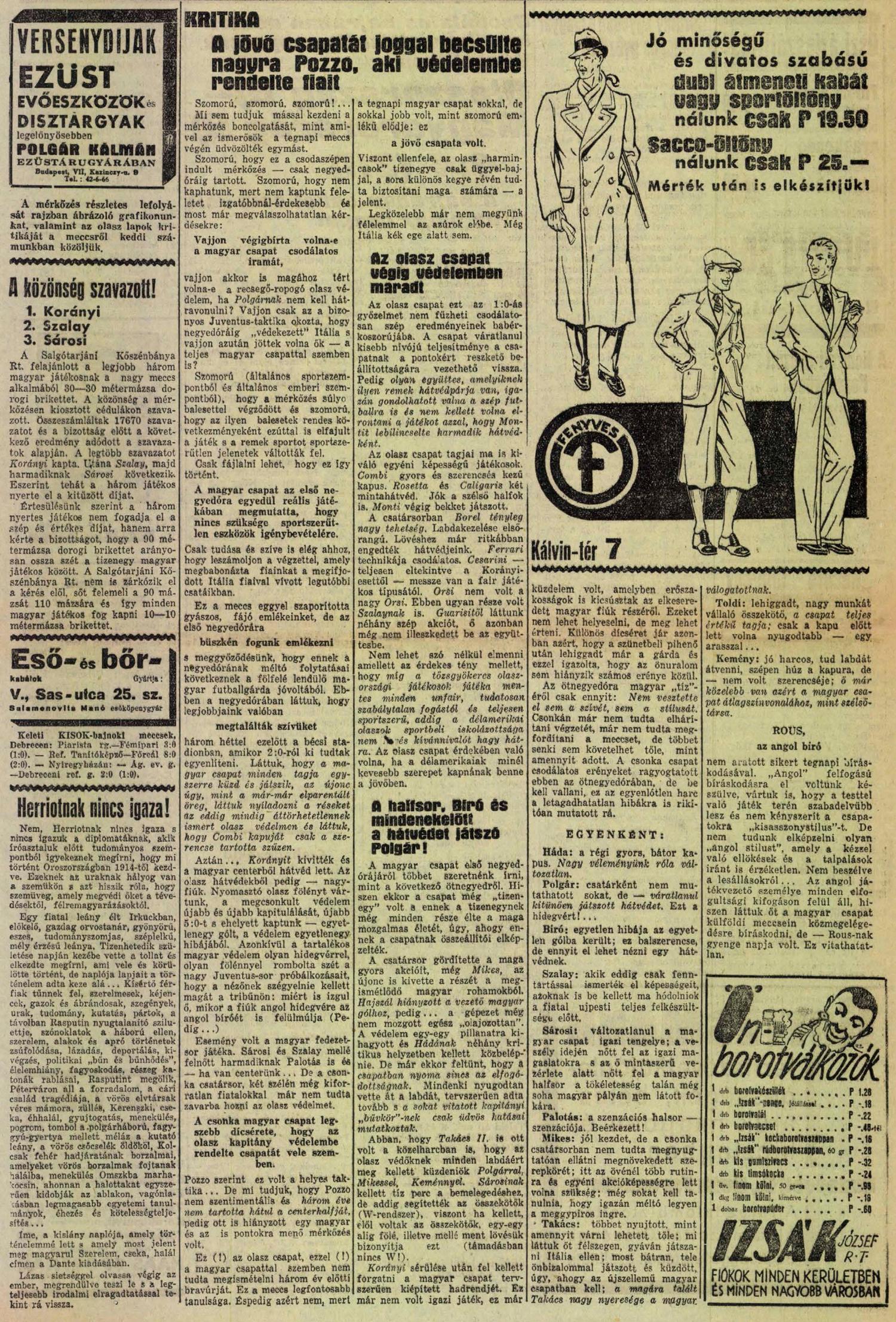 Budapest, Üllői út, 38 000 néző, vezette: Rous (angol)