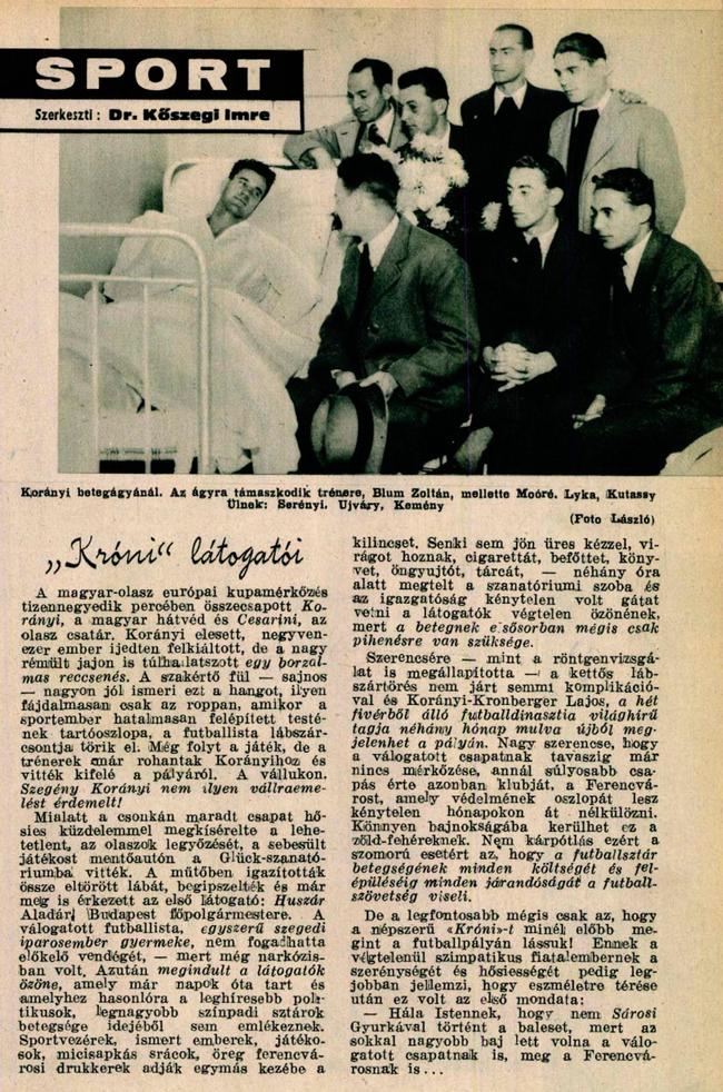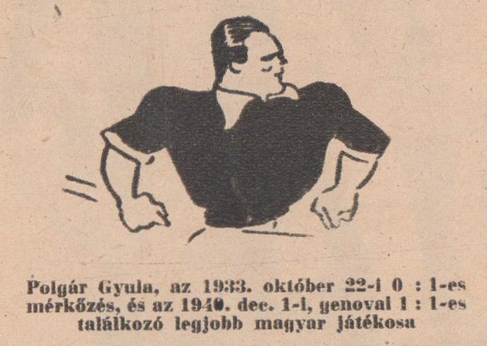Magyarország: Háda (Ferencváros) — Korányi I (Ferencváros), Bíró (III. ker.) — Szalay (Újpest), Sárosi (Ferencváros), Palotás (Bocskai) — Mikes (Kispest), Takács II (Ferencváros), Polgár (Budai 11), Toldi (Ferencváros), Kemény (Ferencváros)