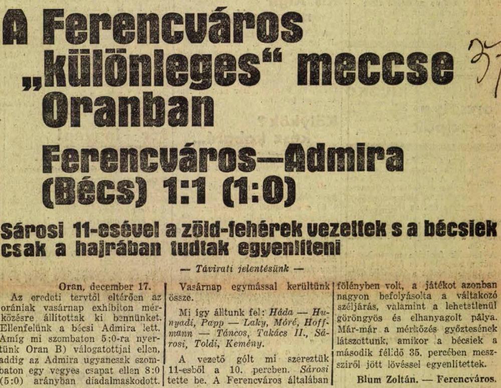 1933.XII.17. Admira Wien – Ferencváros 1:1