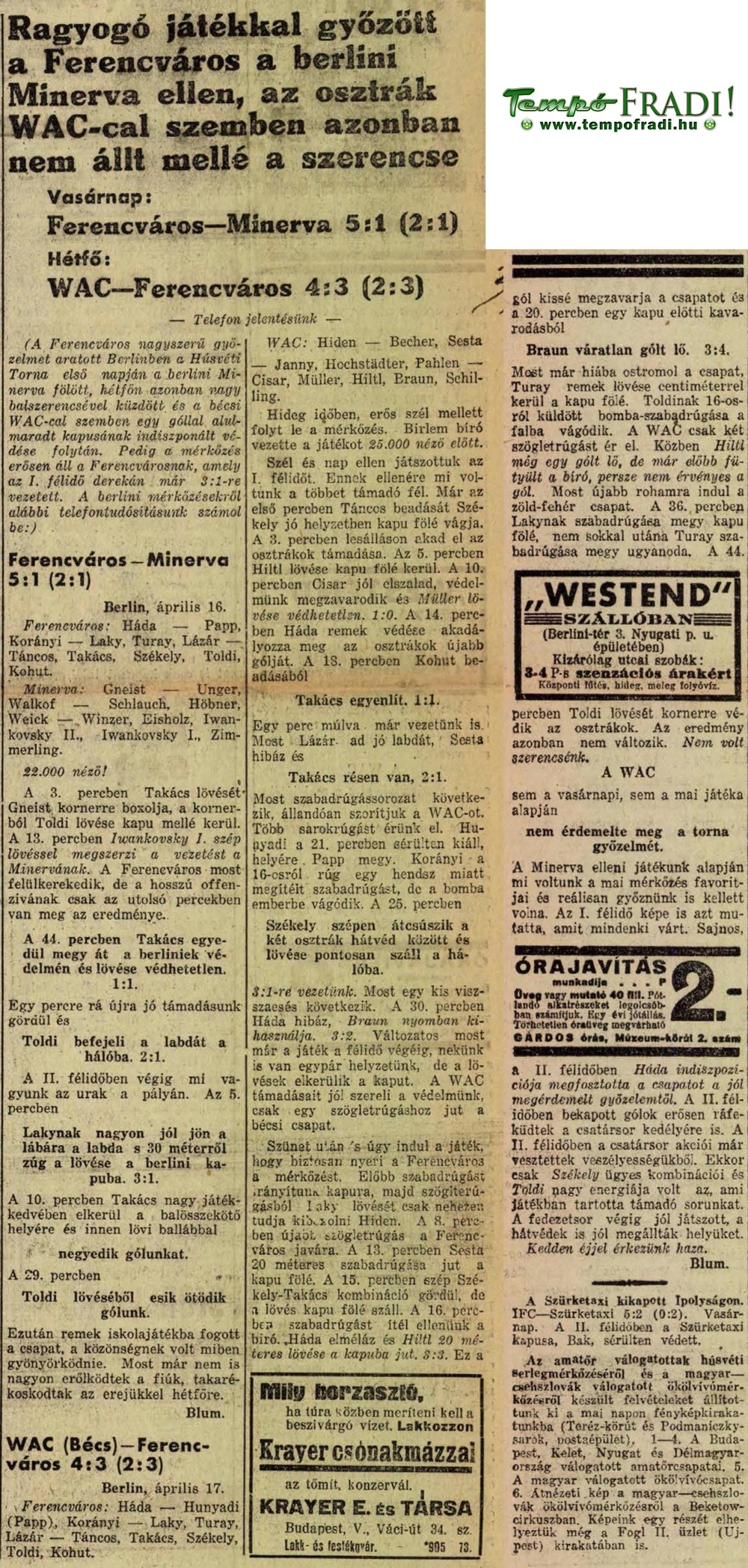 1933.IV.16. Húsvéti torna, Minerva – Ferencváros 1:5