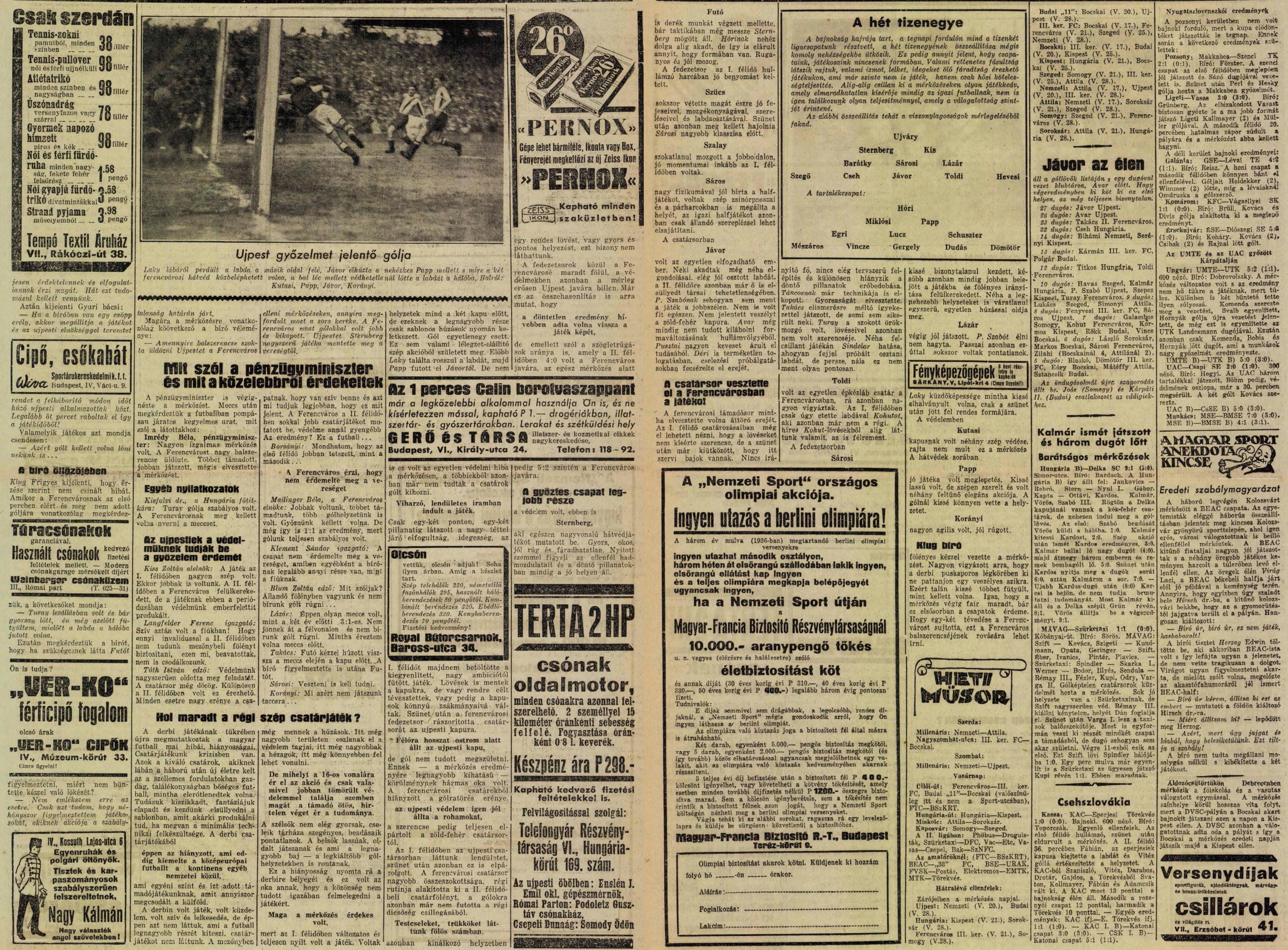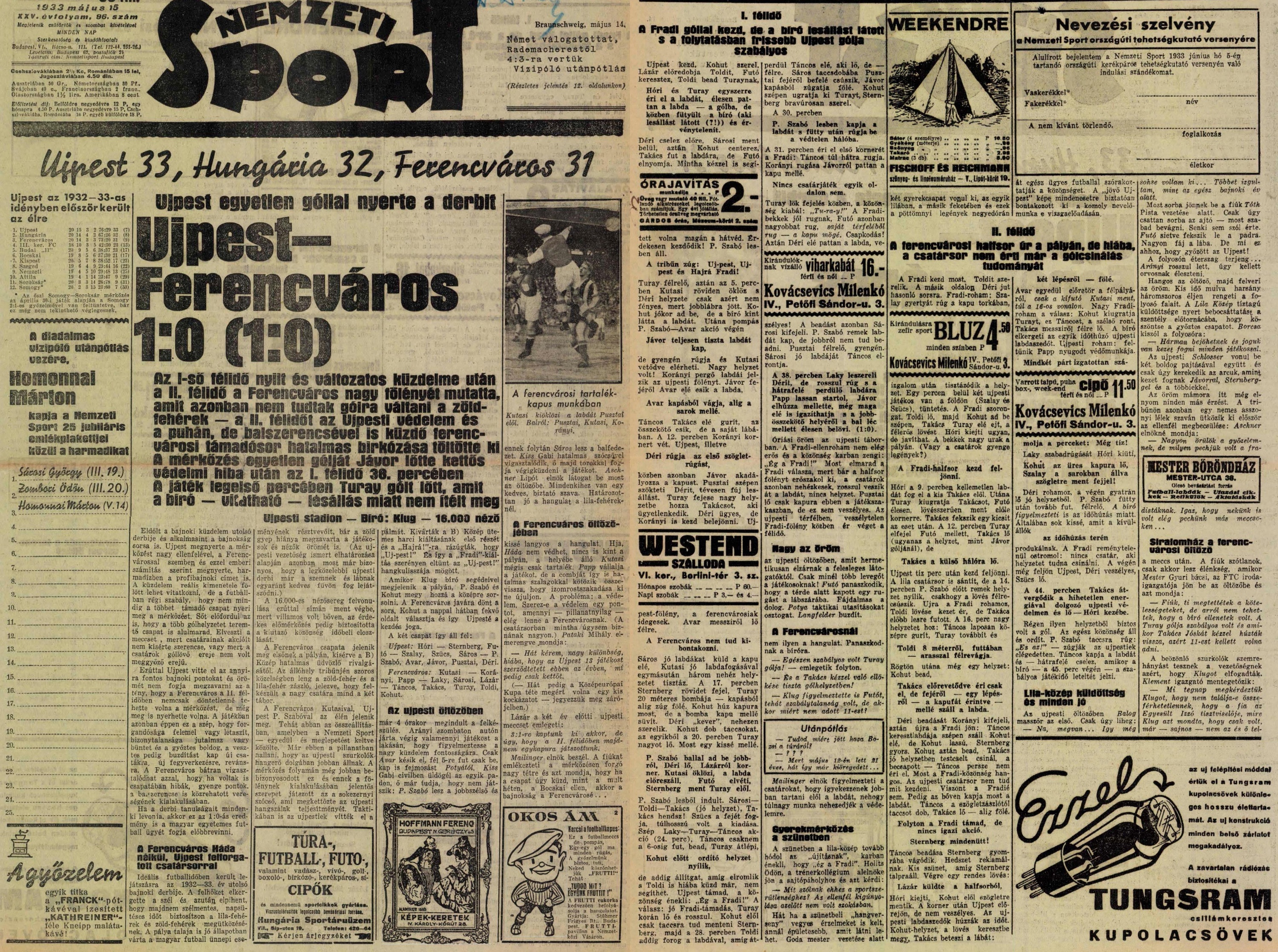 1933.V.14. Újpest – Ferencváros 1:0