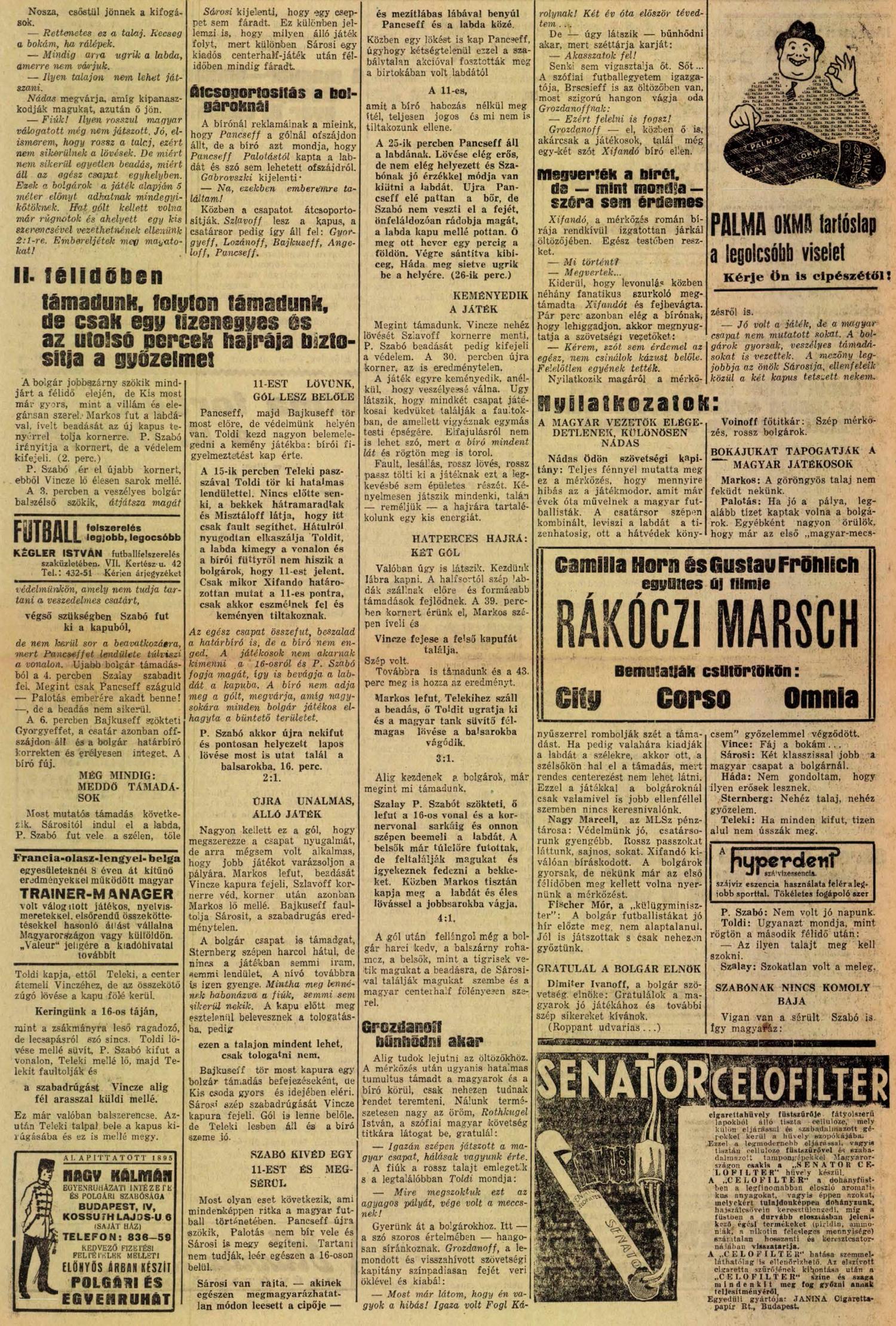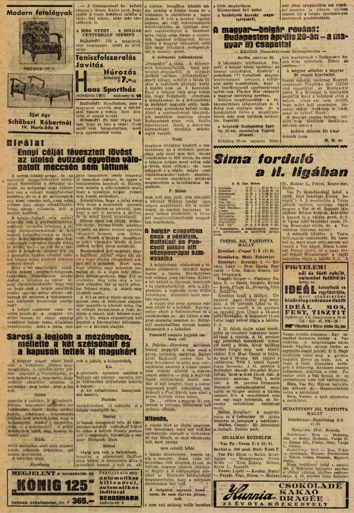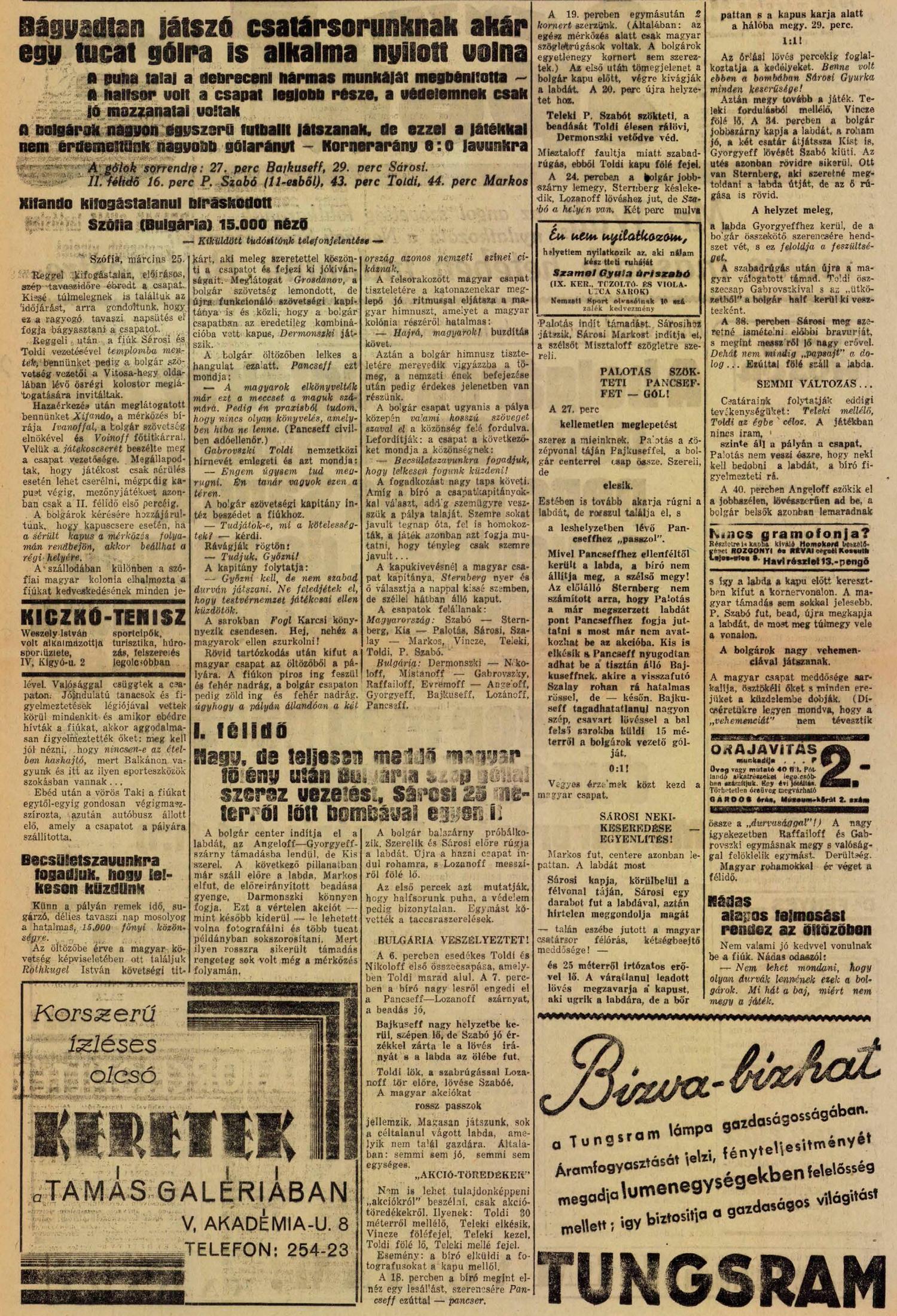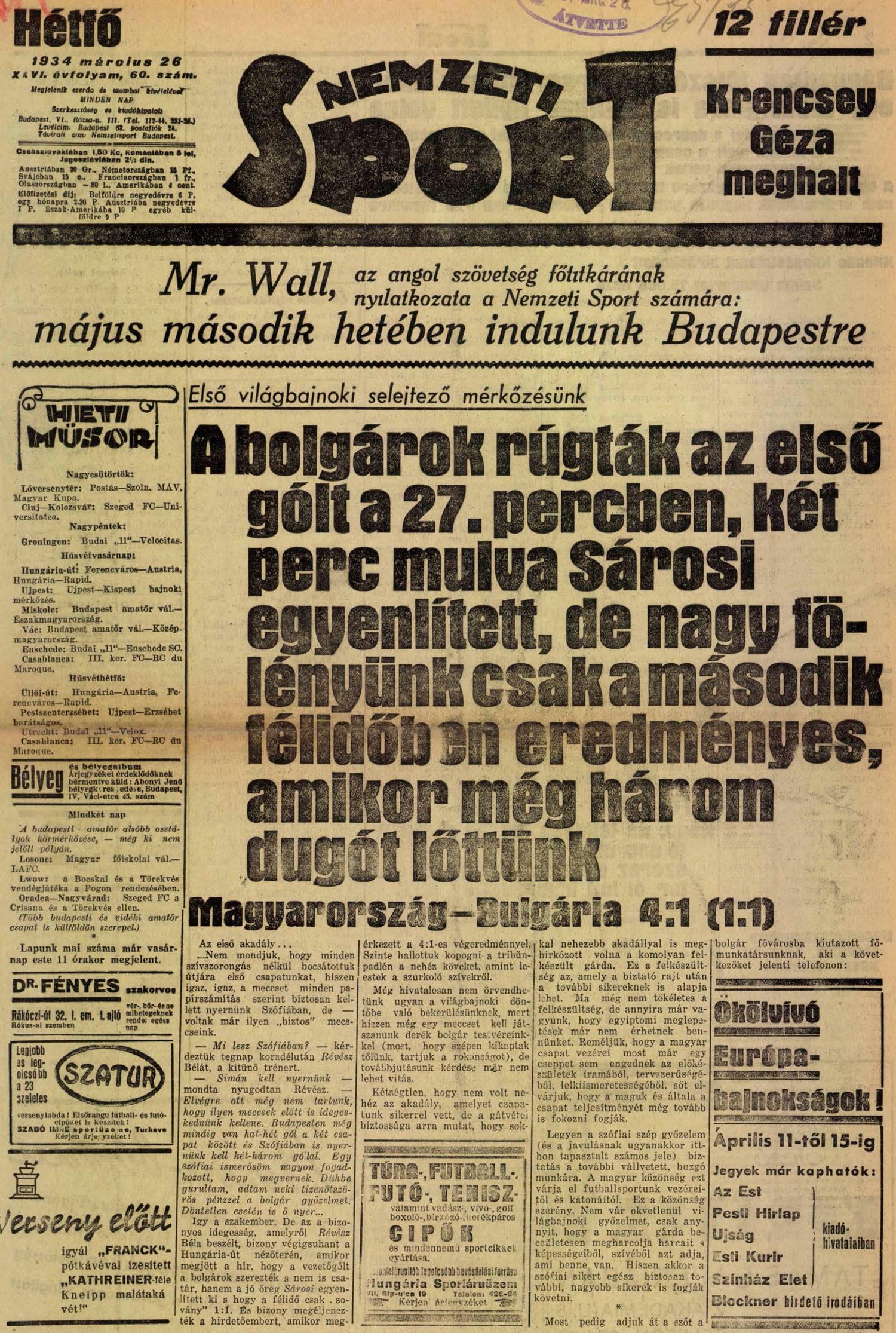 1934.III.25. VB selejtező, Bulgária – Magyarország 1:4