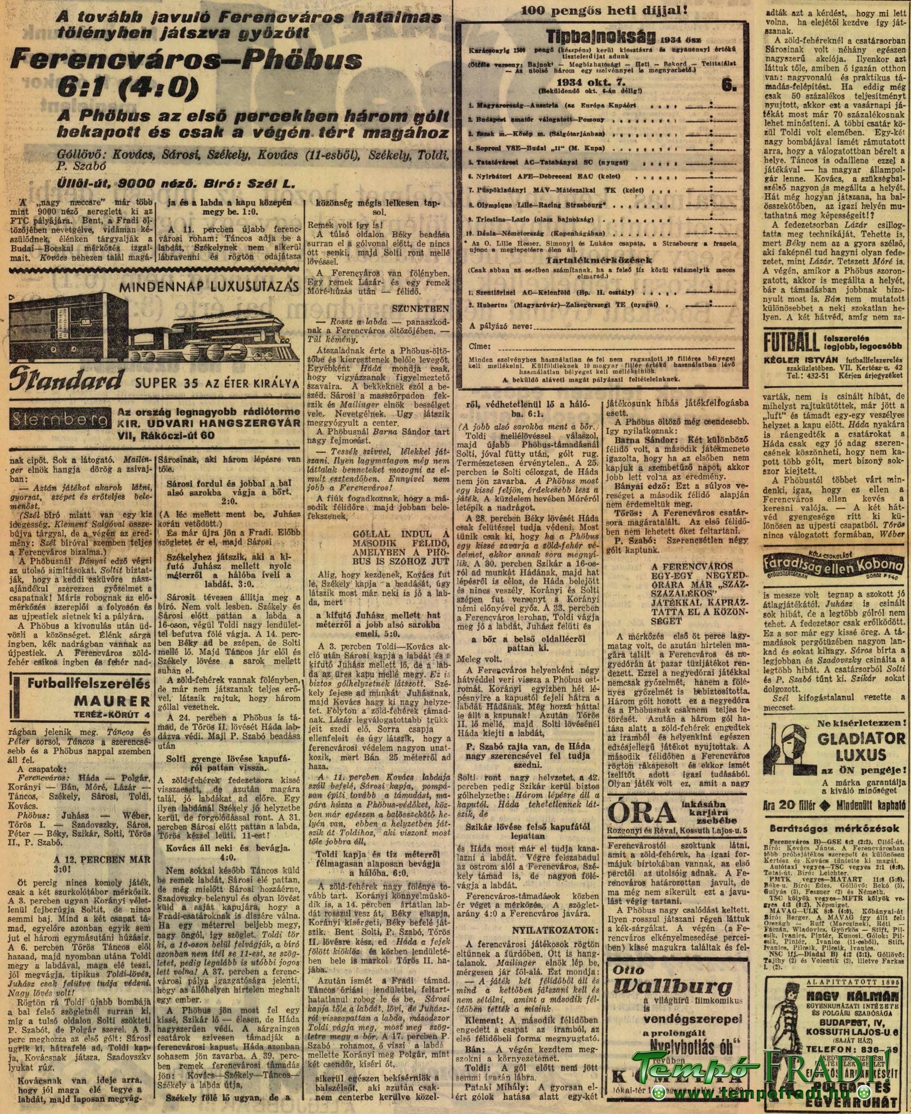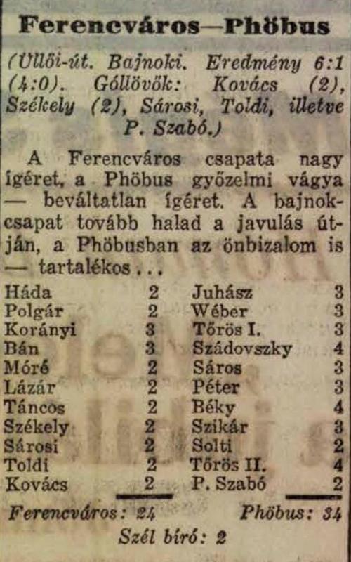 1934.IX.30. Ferencváros – Phöbus 6:1