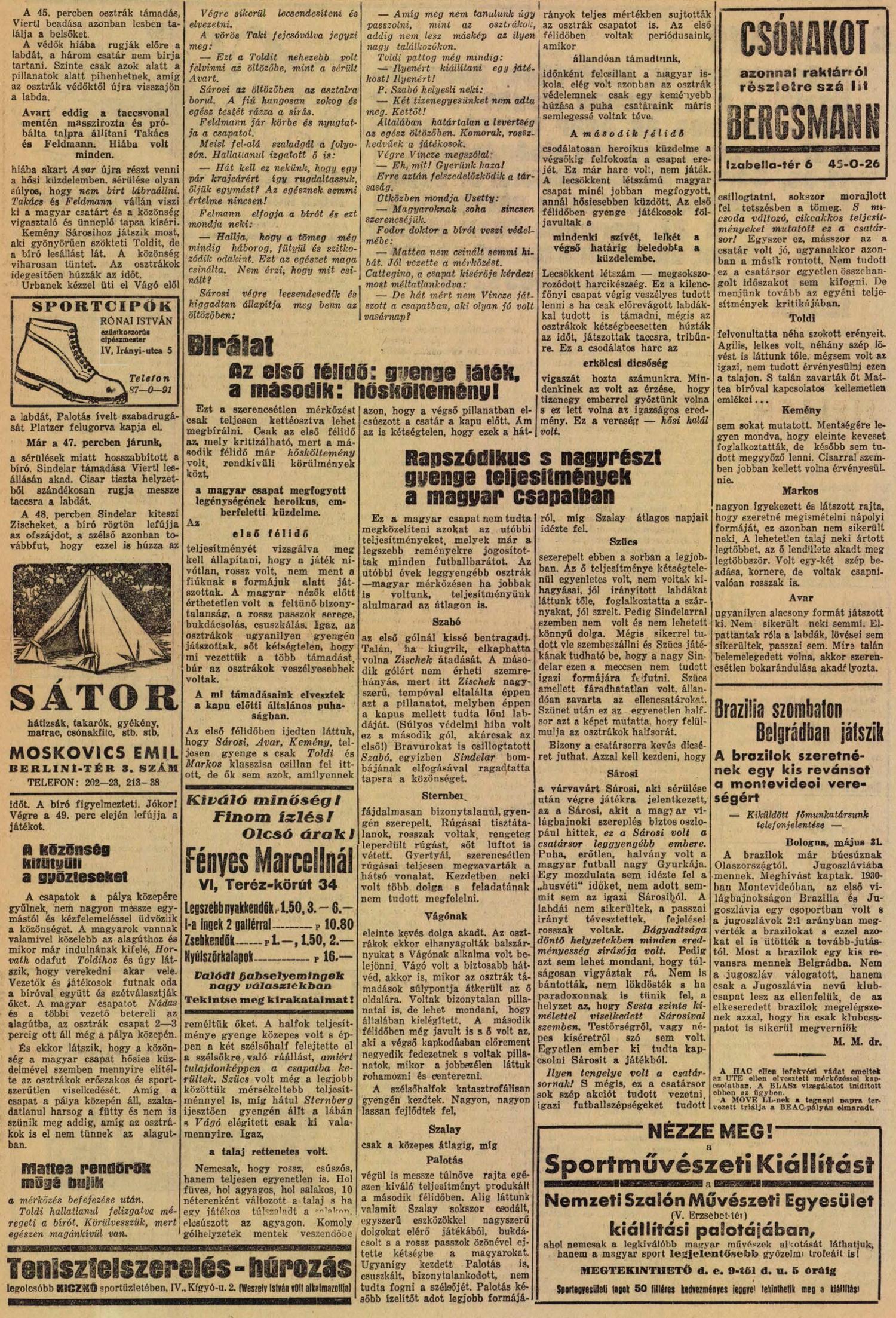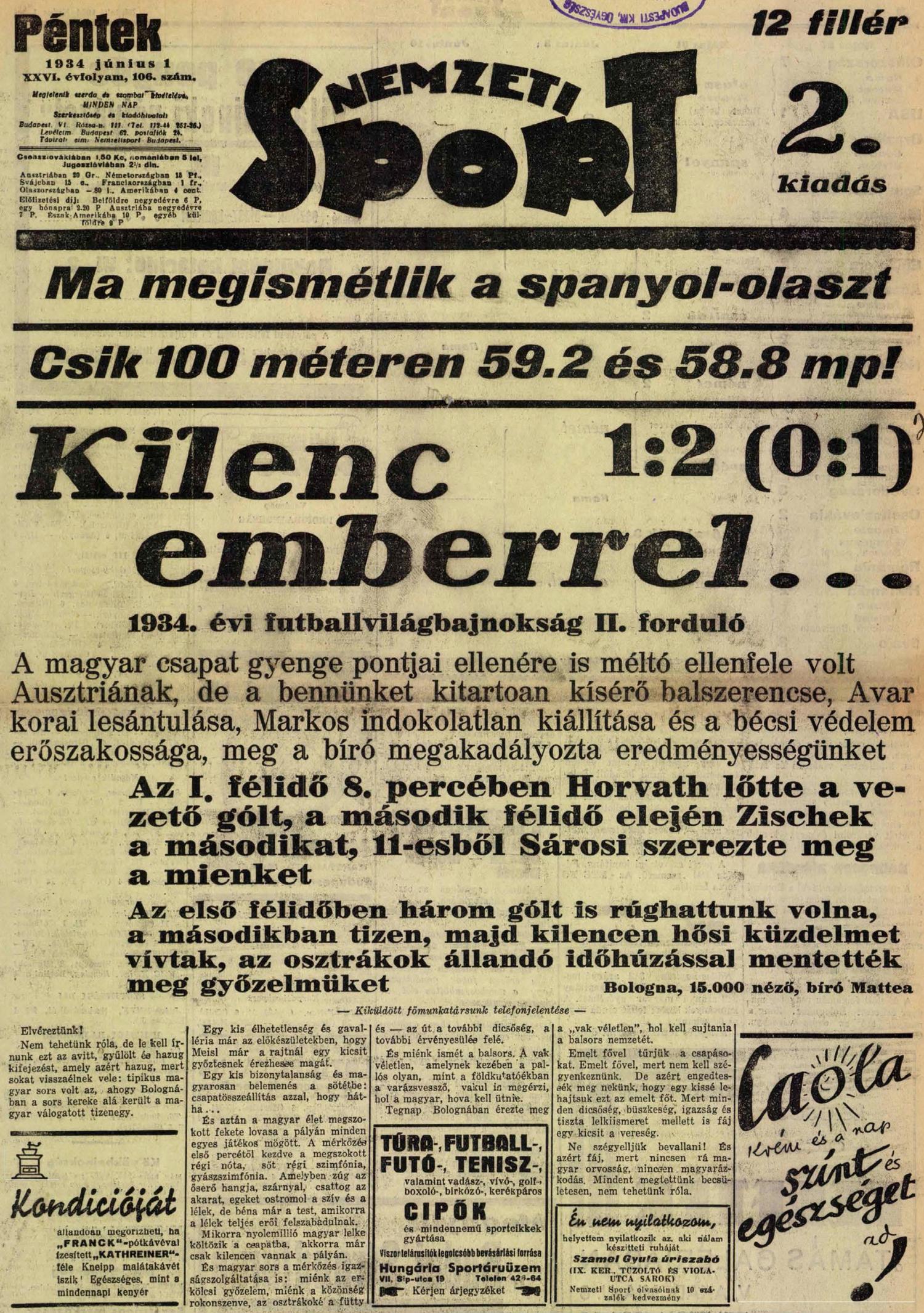 1934. május 31. AUSZT’RIA—MAGYARORSZÁG 2:1 (1:0)
