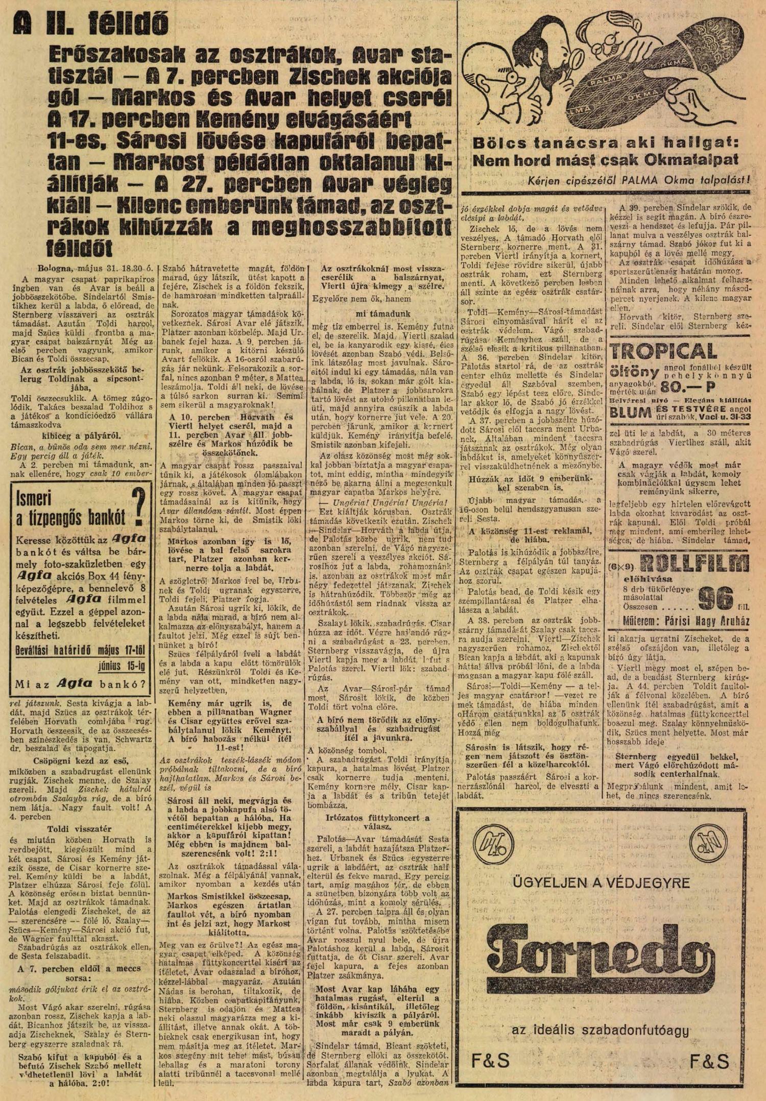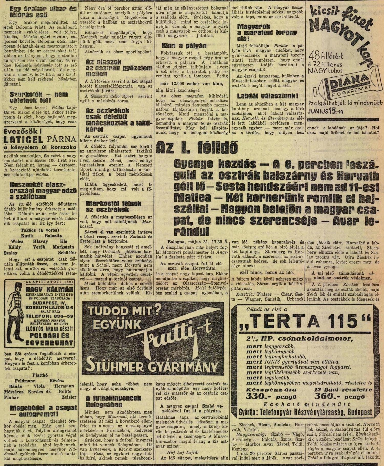 1934.V.31. VB, Ausztria – Magyarország 2:1