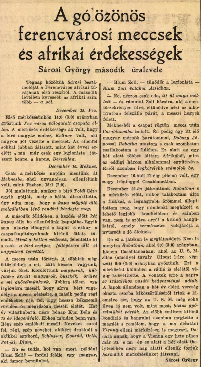 1934.XII.24. Marokkó – Ferencváros 0:6