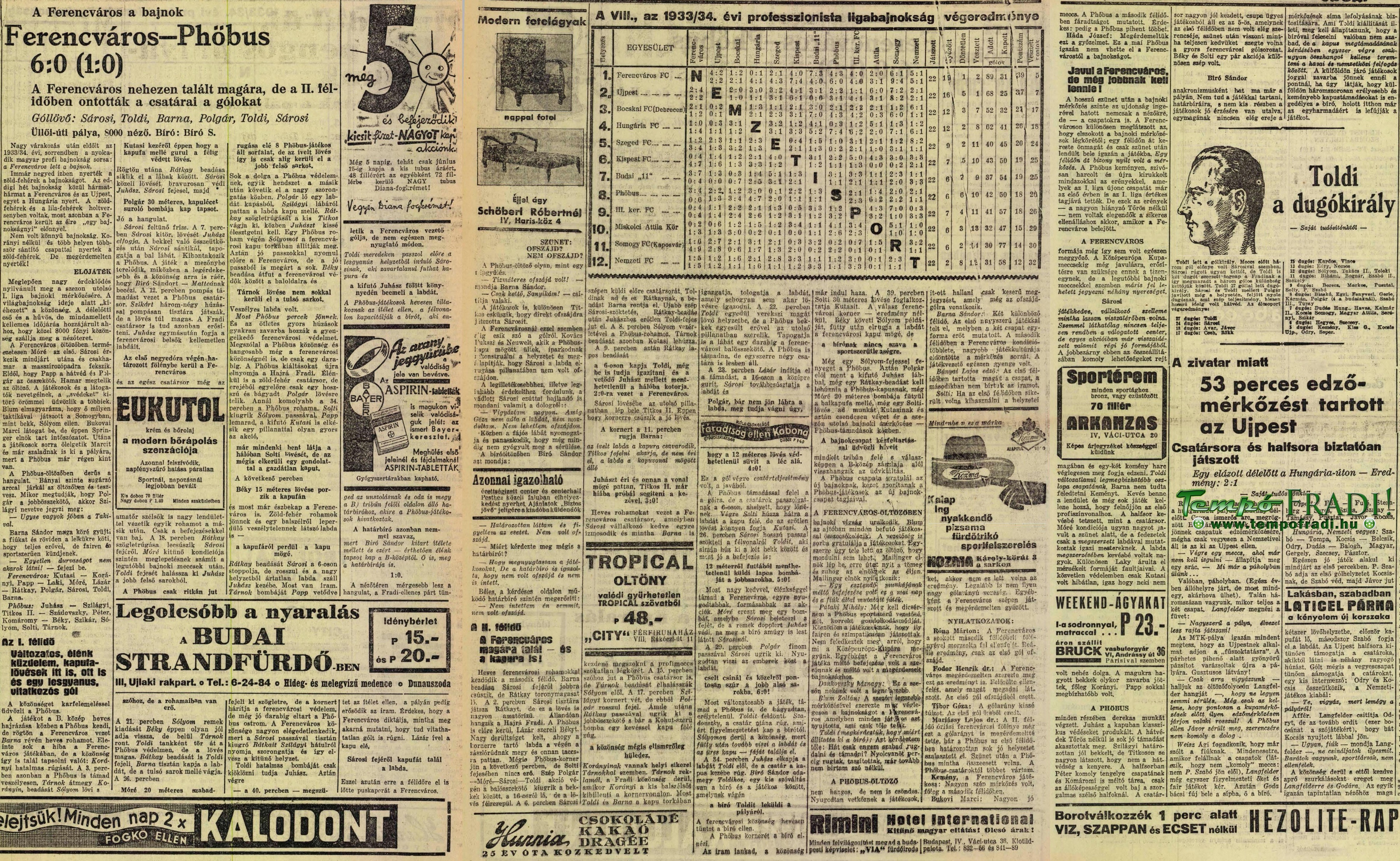 Kategória: 1933/34 | Címke: 1933/34, bajnokavató mérkőzés, Barna Sándor, NB1, Phöbus, Polgár Gyula, Sárosi György dr., Toldi Géza