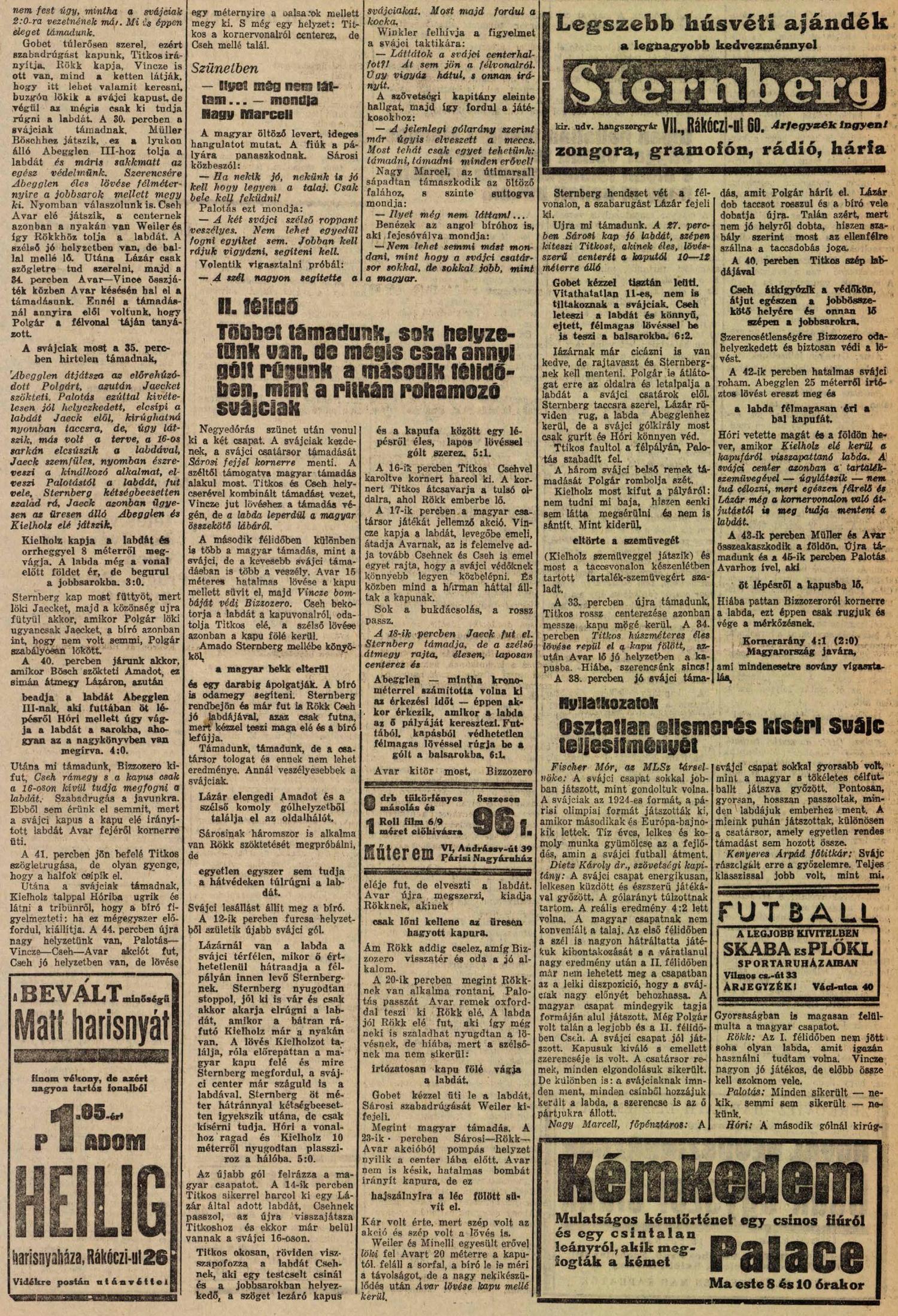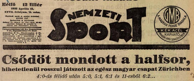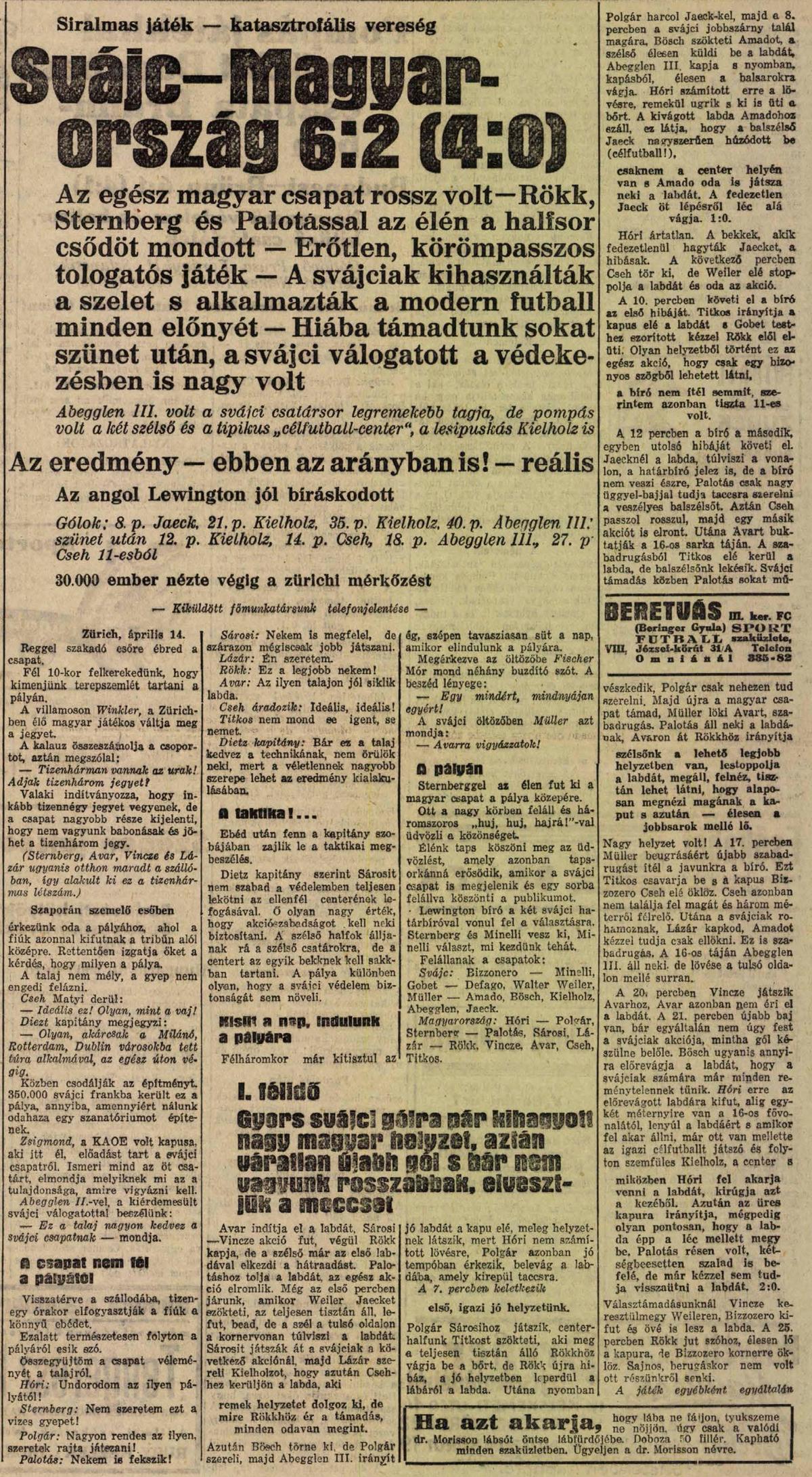1935. április 14. SVÁJC—MAGYARORSZÁG 6:2 (4:0)