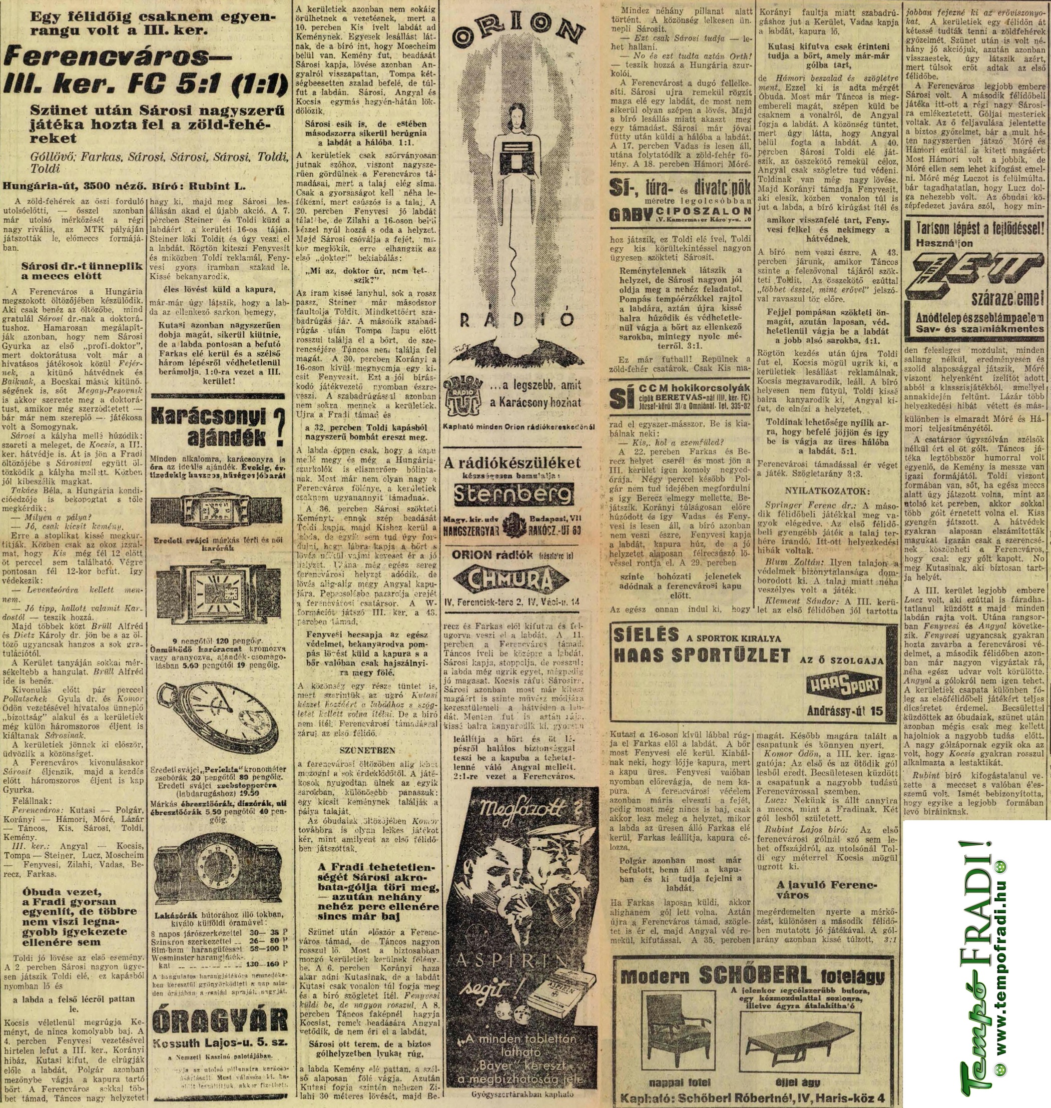 1935.XII.15. III. ker. FC – Ferencváros 1:5