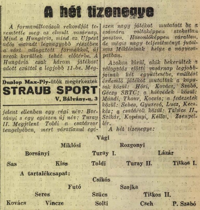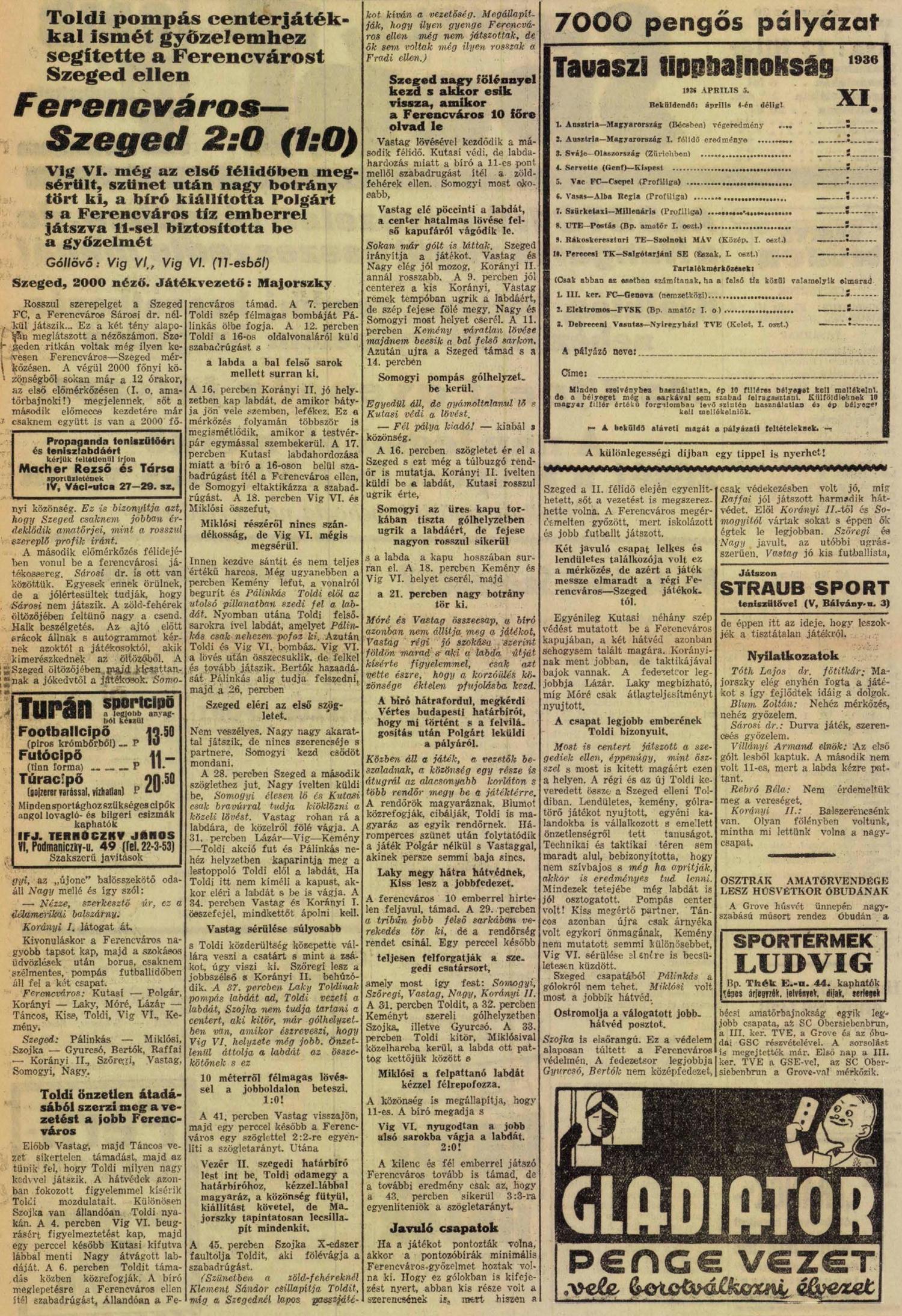 Kategória: 1935/36 | Címke: 1935/36, Kiss Gyula, Lázár Gyula, NB1, piros lap (emberhátrány), Polgár Gyula, Szeged, Toldi Géza, Víg II. János