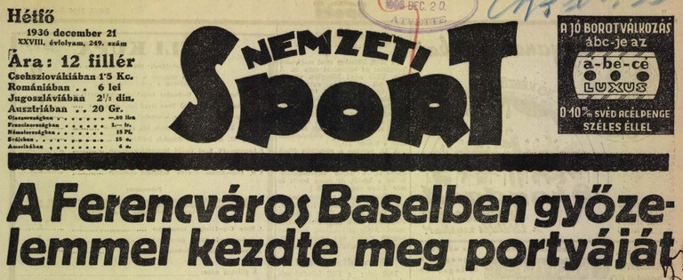 1936.XII.20. FC Basel – Ferencváros 2:4