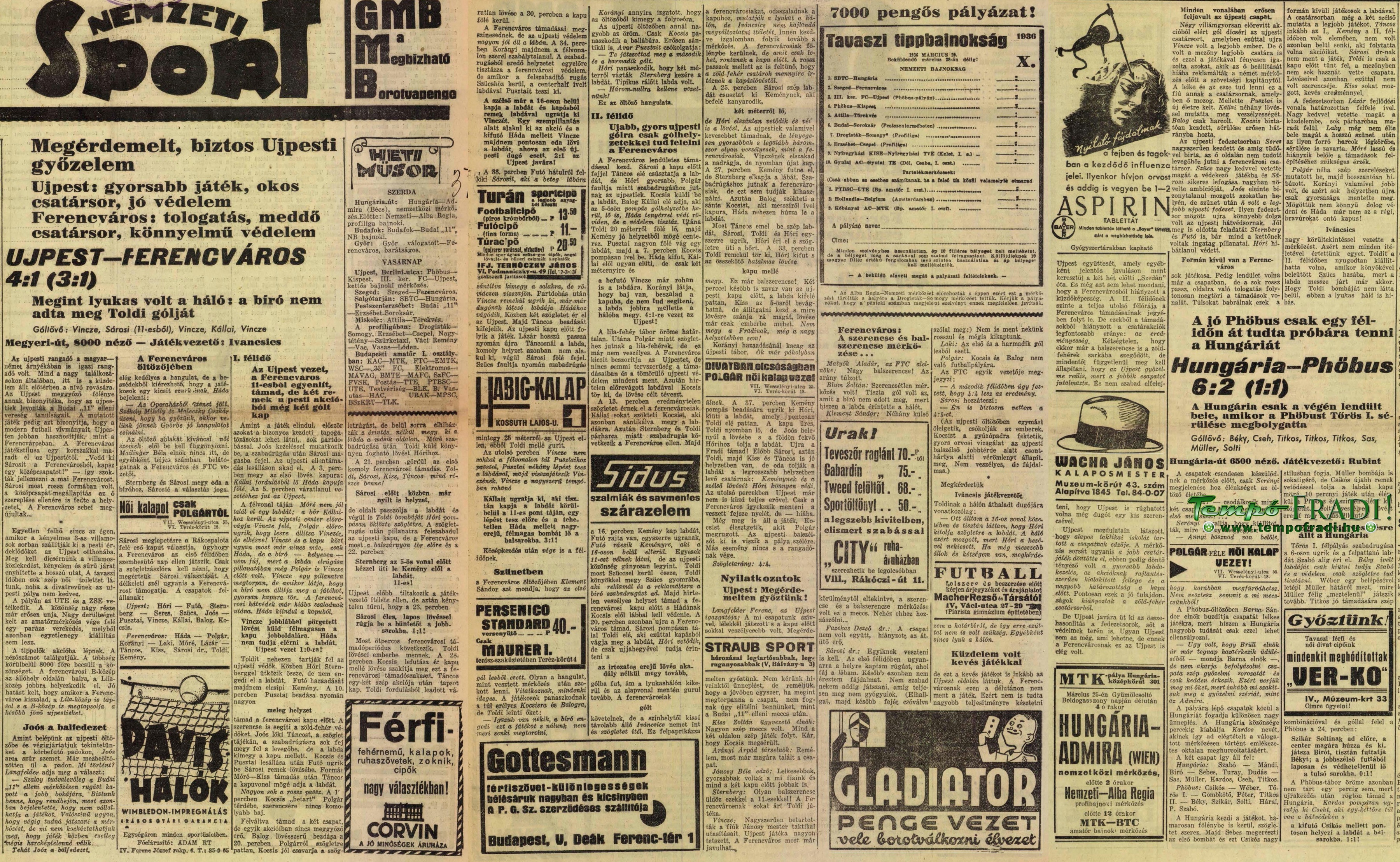 1936.III.22. Újpest – Ferencváros 4:1
