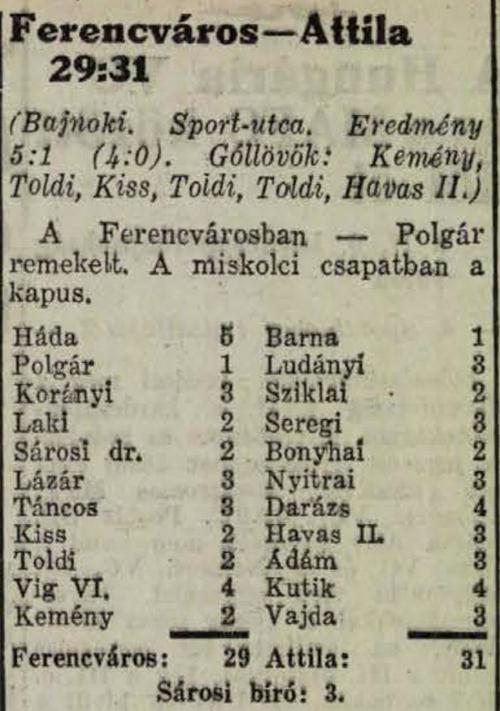 Kategória: 1935/36 | Címke: 1935/36, Attila (Miskolc), Kemény Tibor, Kiss Gyula, NB1, Toldi Géza