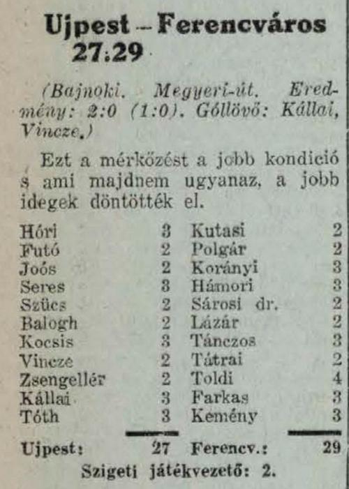 1936.XI.22. Újpest – Ferencváros 2:0