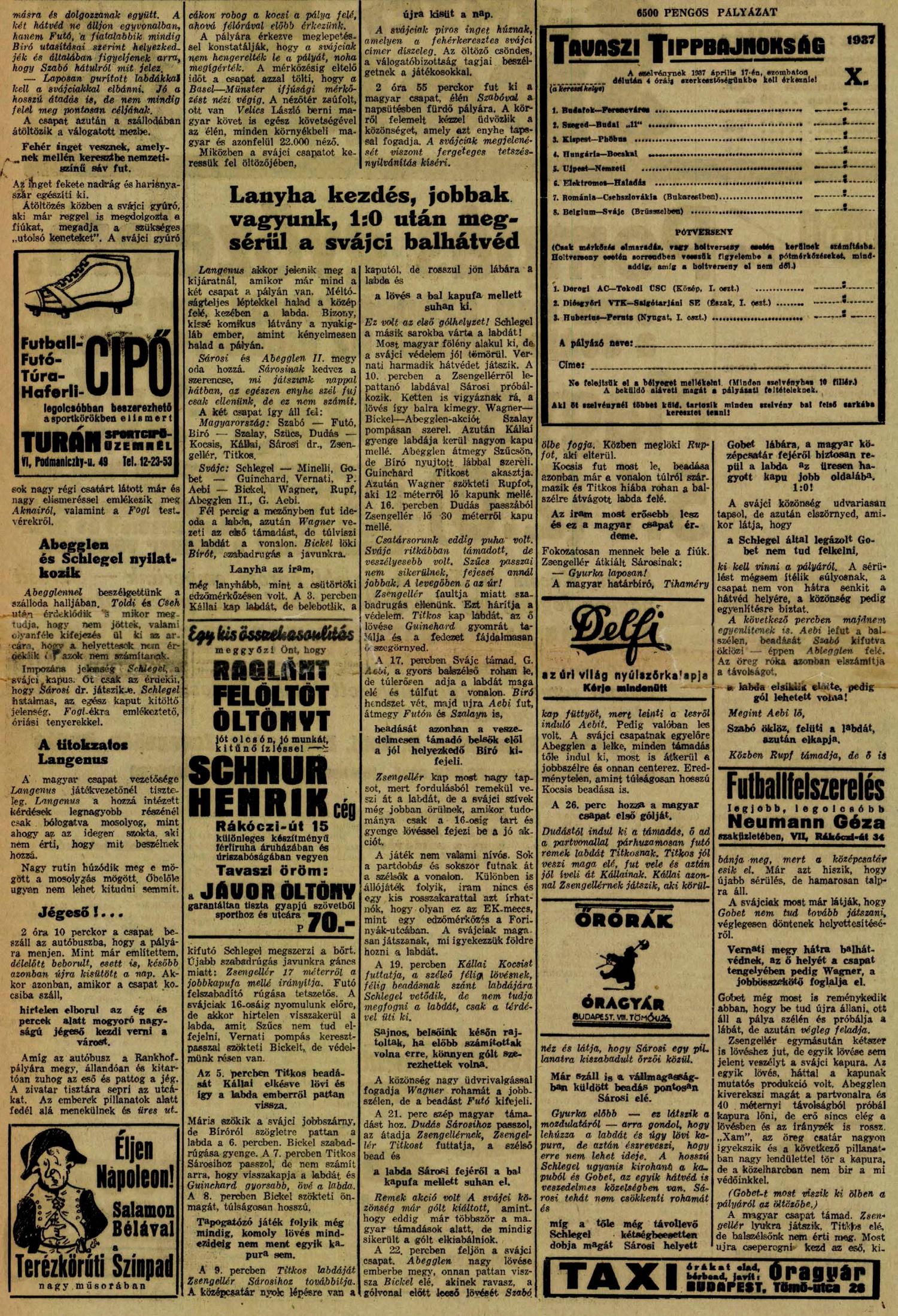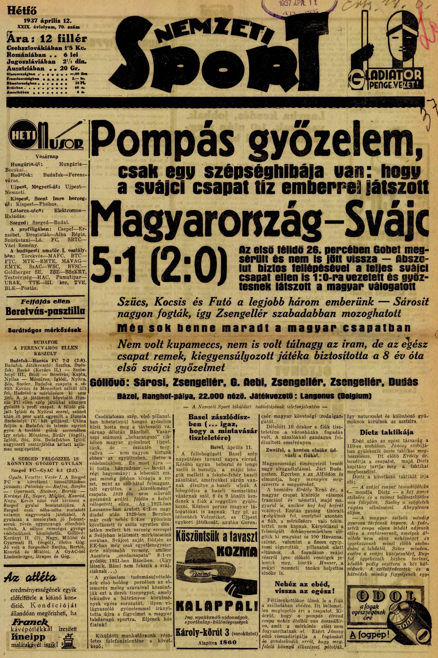 1937. április 11. SVÁJC—MAGYARORSZÁG 1:5 (0:2)