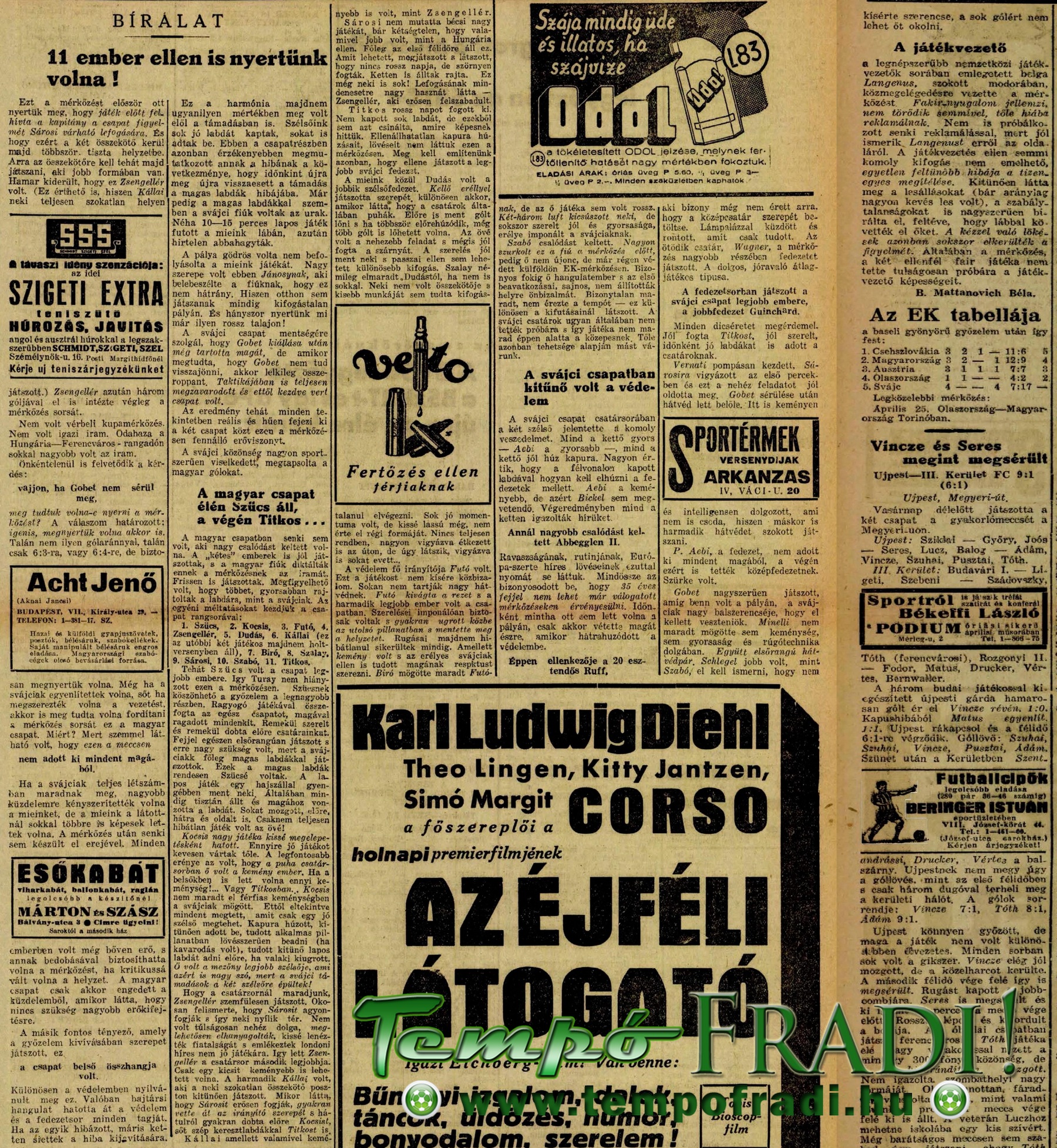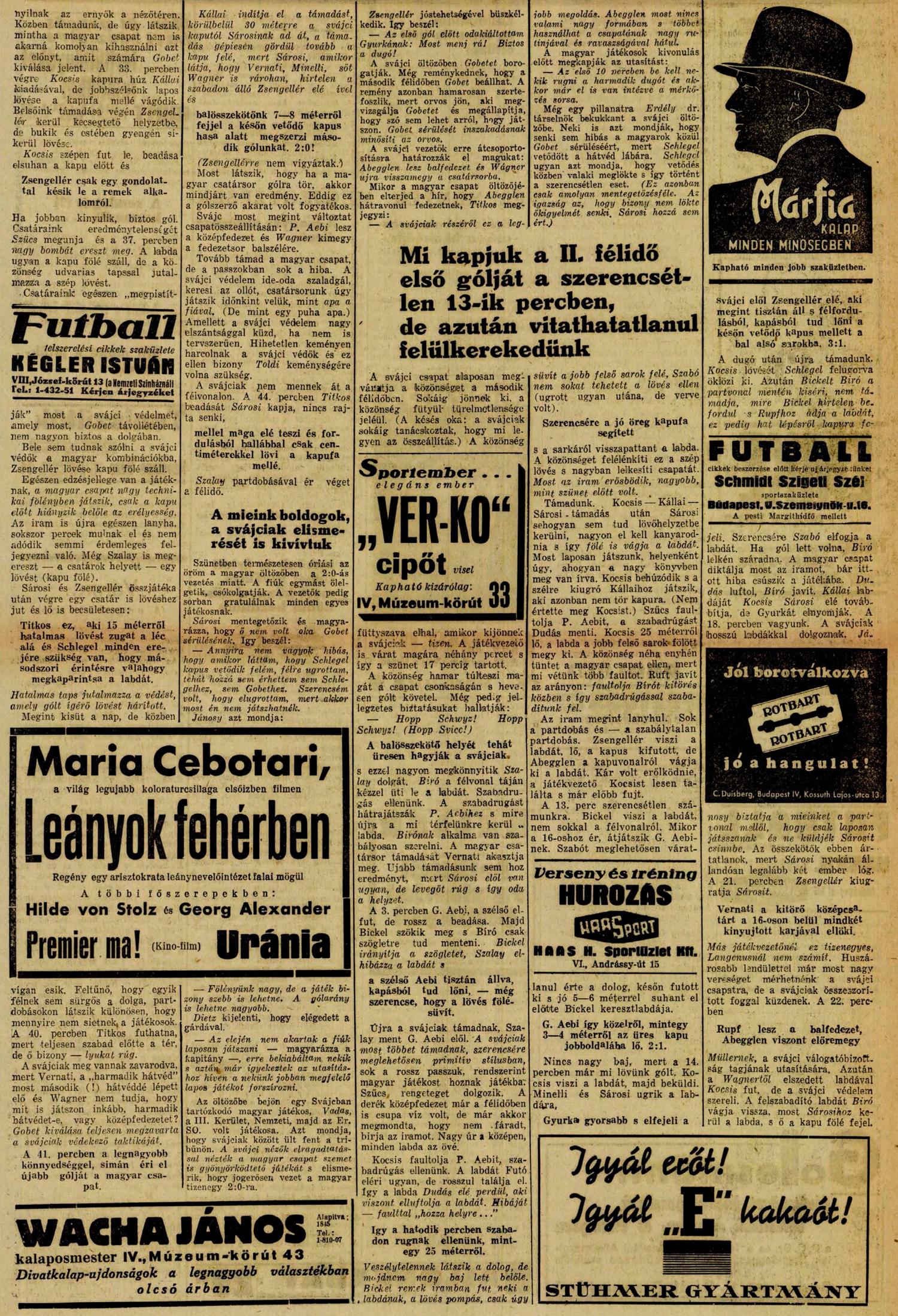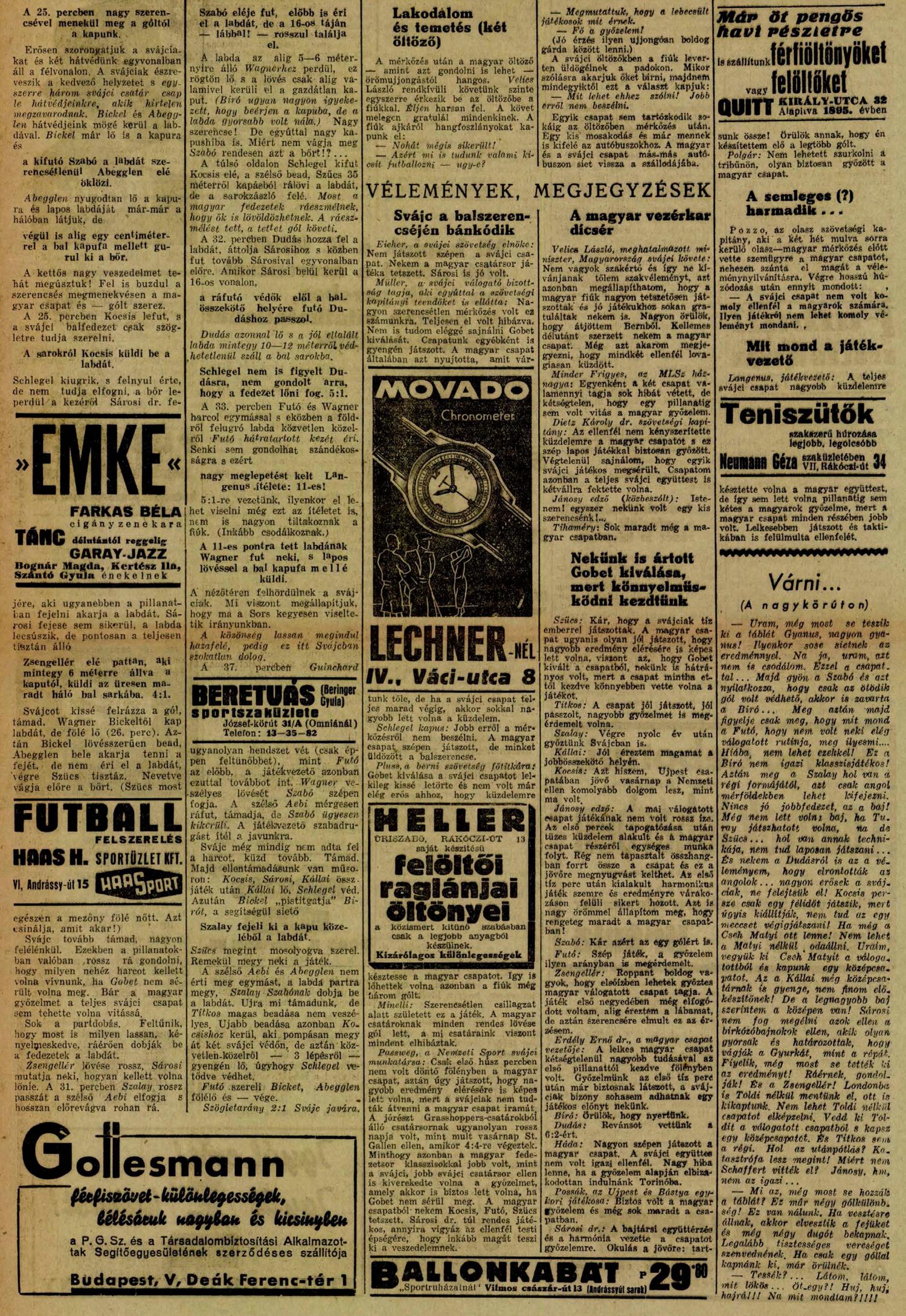 Góllövő: Sárosi dr. (26.), Zsengellér (41., 59., 70.), Dudás (77.) ill. G. Aeby (58.)