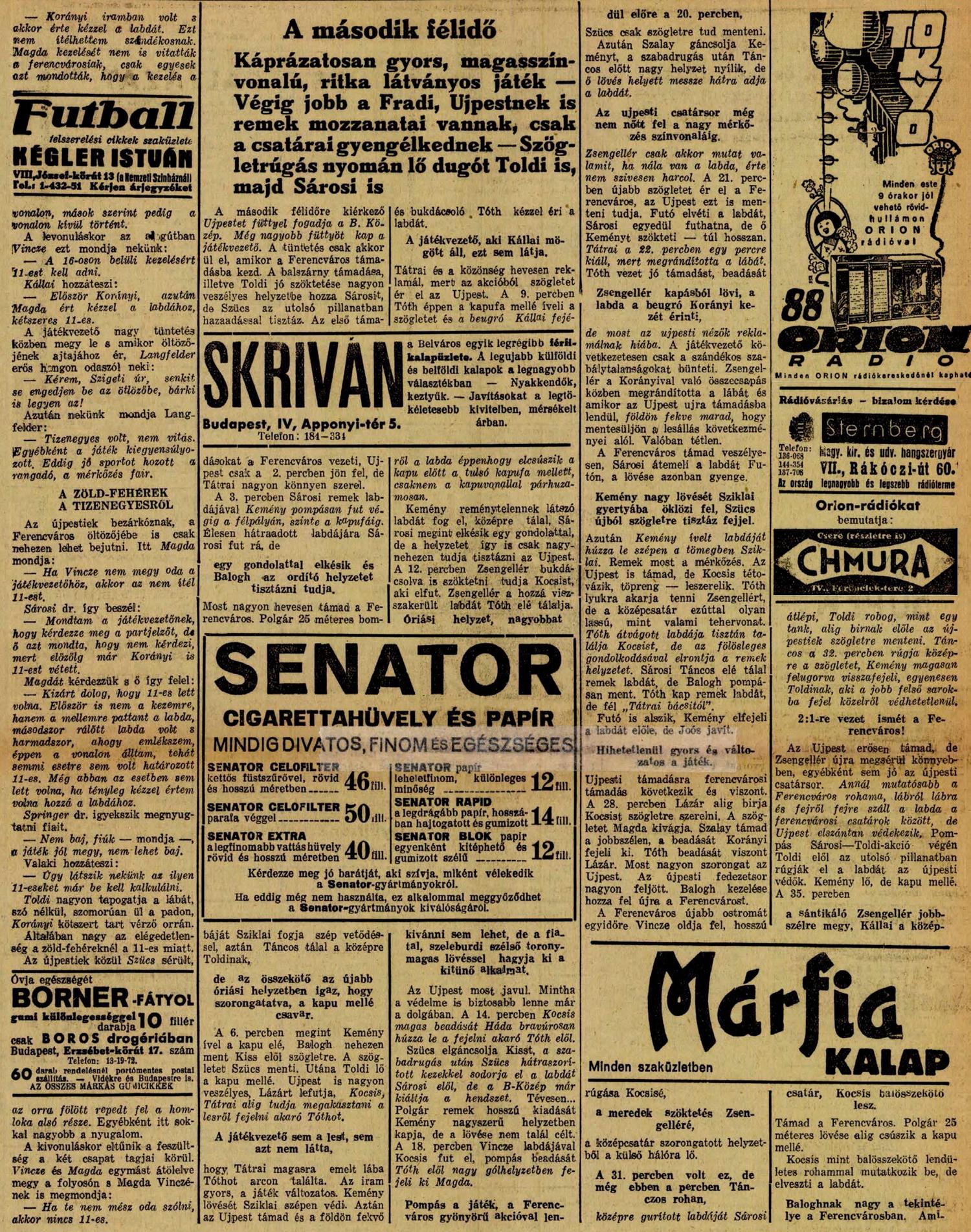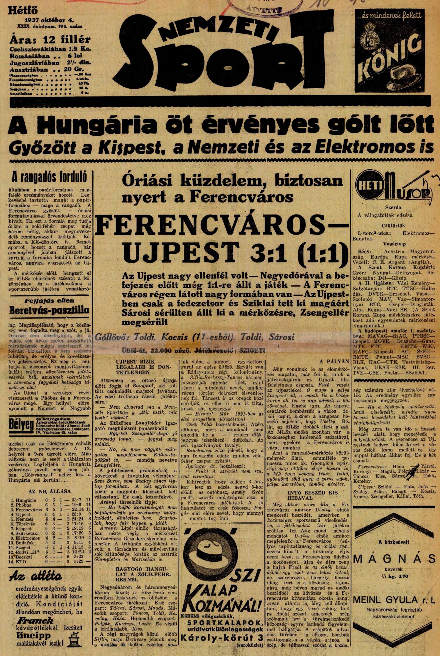 1937.X.3. Ferencváros – Újpest 3:1 Közzétéve: 2009. február 6. péntek | Szerző: K@rcsi Egy hozzászólás a(z) 11110010001ejegyzéshez Takács Gábor on 2017. október 3. kedd - 08:23 SZÉP, MINT MINDOG MI NÉKÜNK ! Vélemény, hozzászólás? Válasz megszakításaAz e-mail címet nem tesszük közzé. A kötelező mezőket * karakterrel jelöltük Hozzászólás * Név * E-mail cím * Honlap Δ