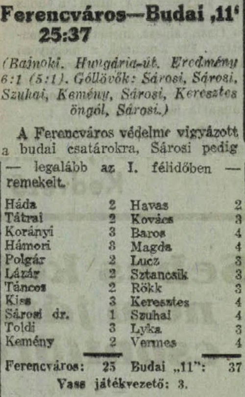 1937.II.28. Budai „11” – Ferencváros 1:6