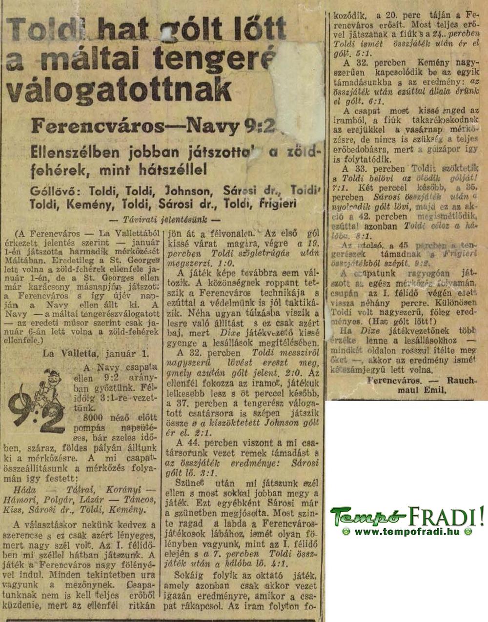 1938.I.1. Máltai tengerész válogatott – Ferencváros 2:9