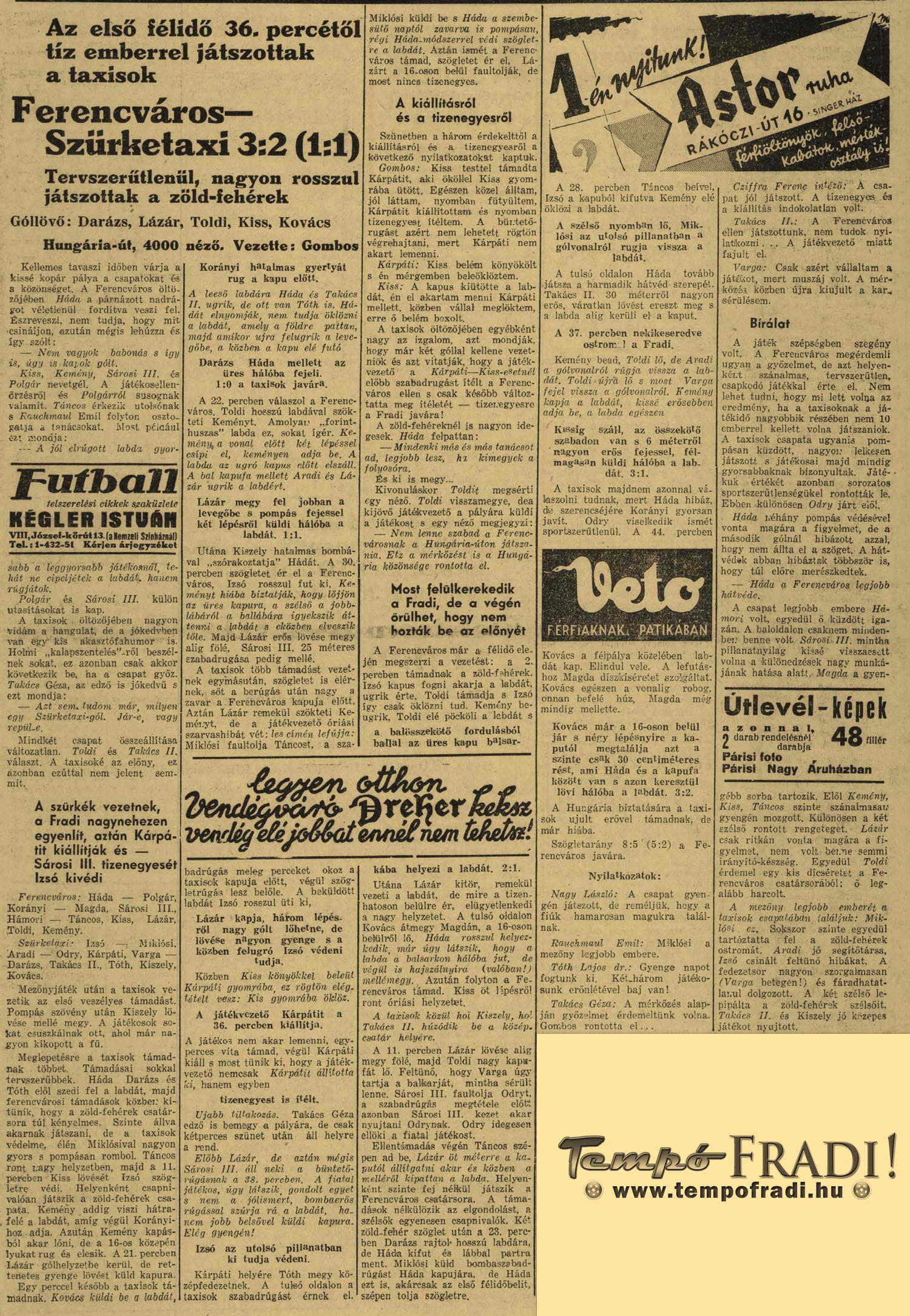 1938.II.27. Szürketaxi – Ferencváros 2:3