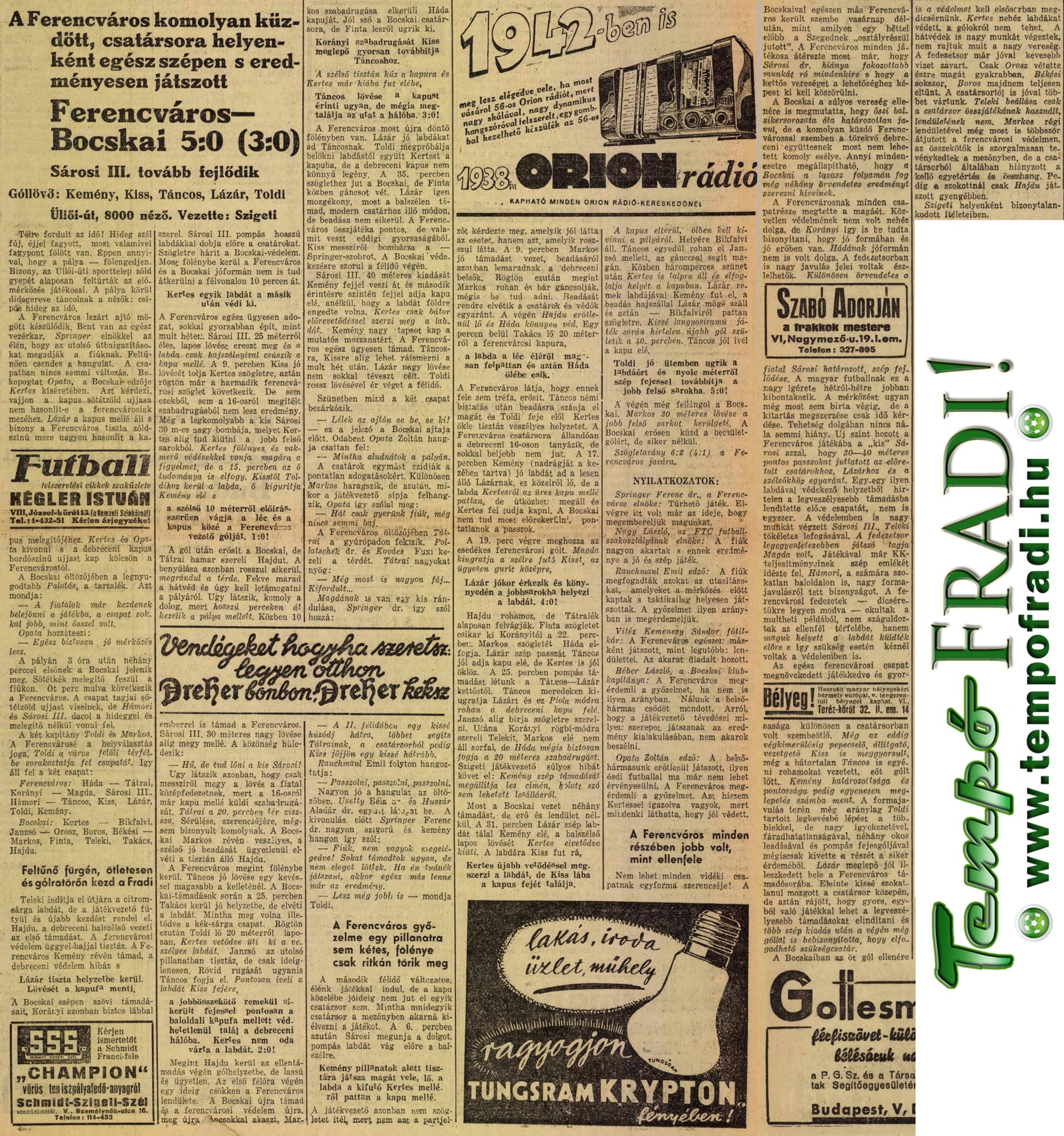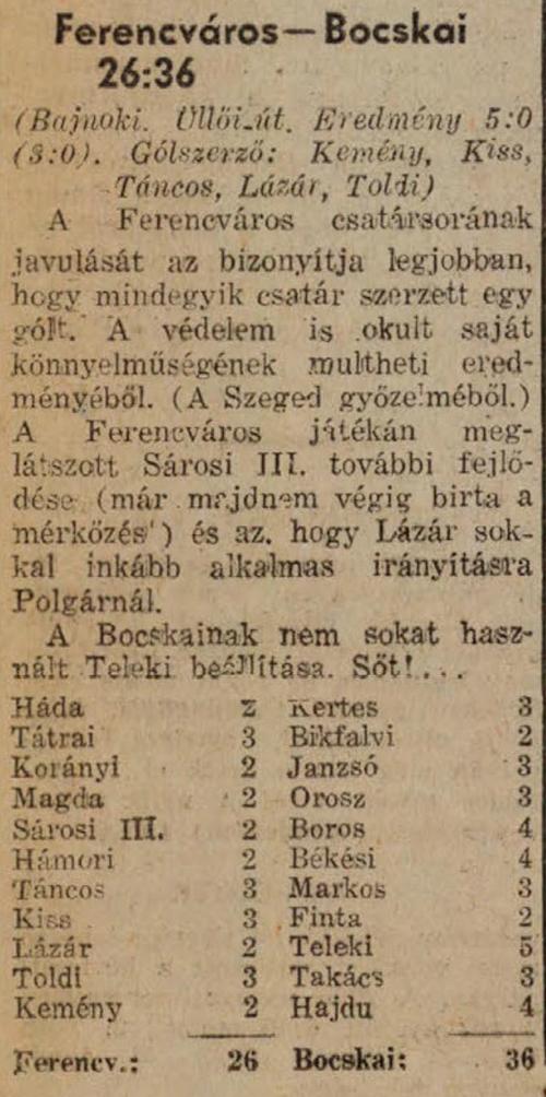 1938.II.13. Ferencváros – Bocskay 5:0