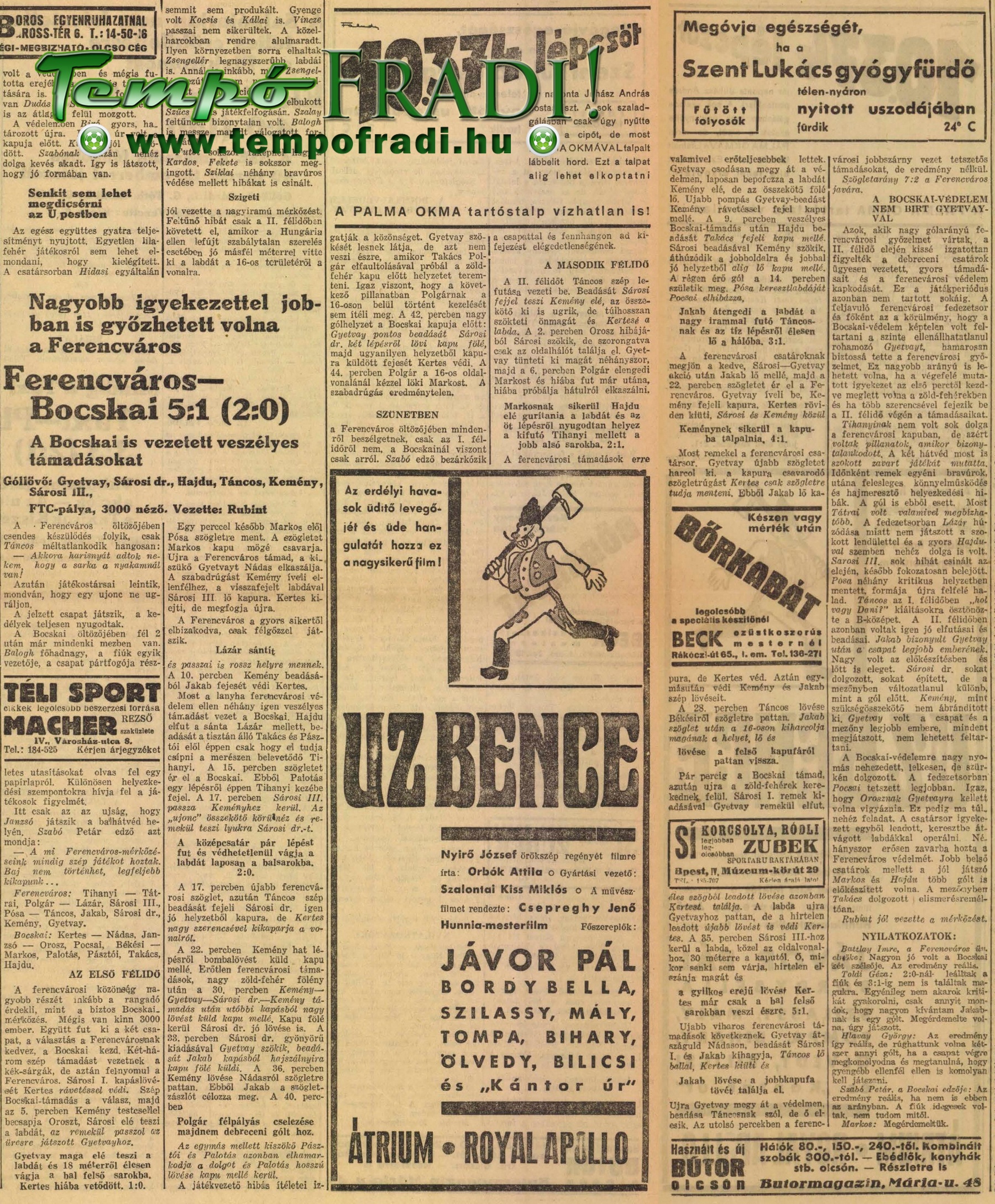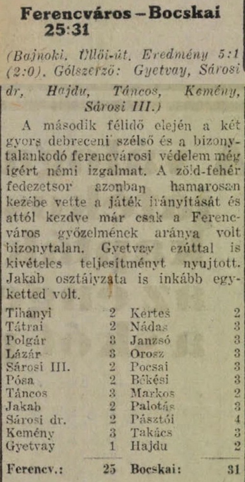 1938.XI.20. Ferencváros – Bocskay 5:1