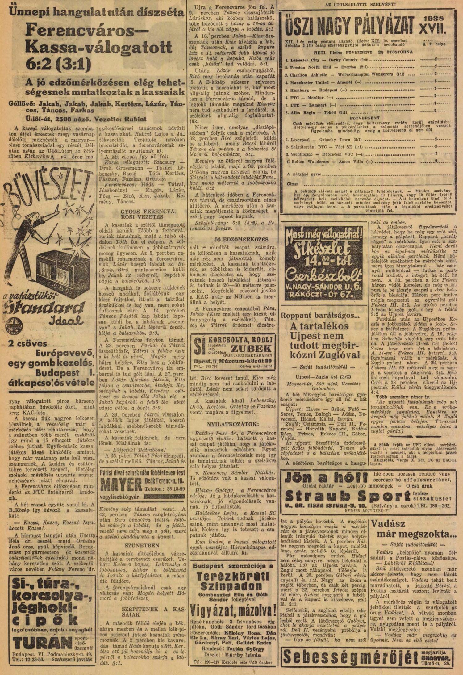 1938.XII.4. Ferencváros – Kassa-válogatott 6:2