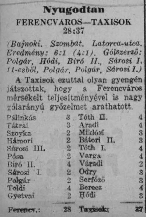 Kategória: 1938/39 | Címke: 1938/39, Biró Mihály Dániel, mesterhármas, NB1, Polgár Gyula, Sárosi György dr., Taxisok (Szürketaxi)