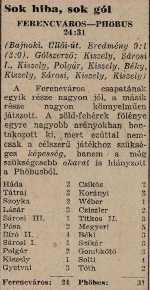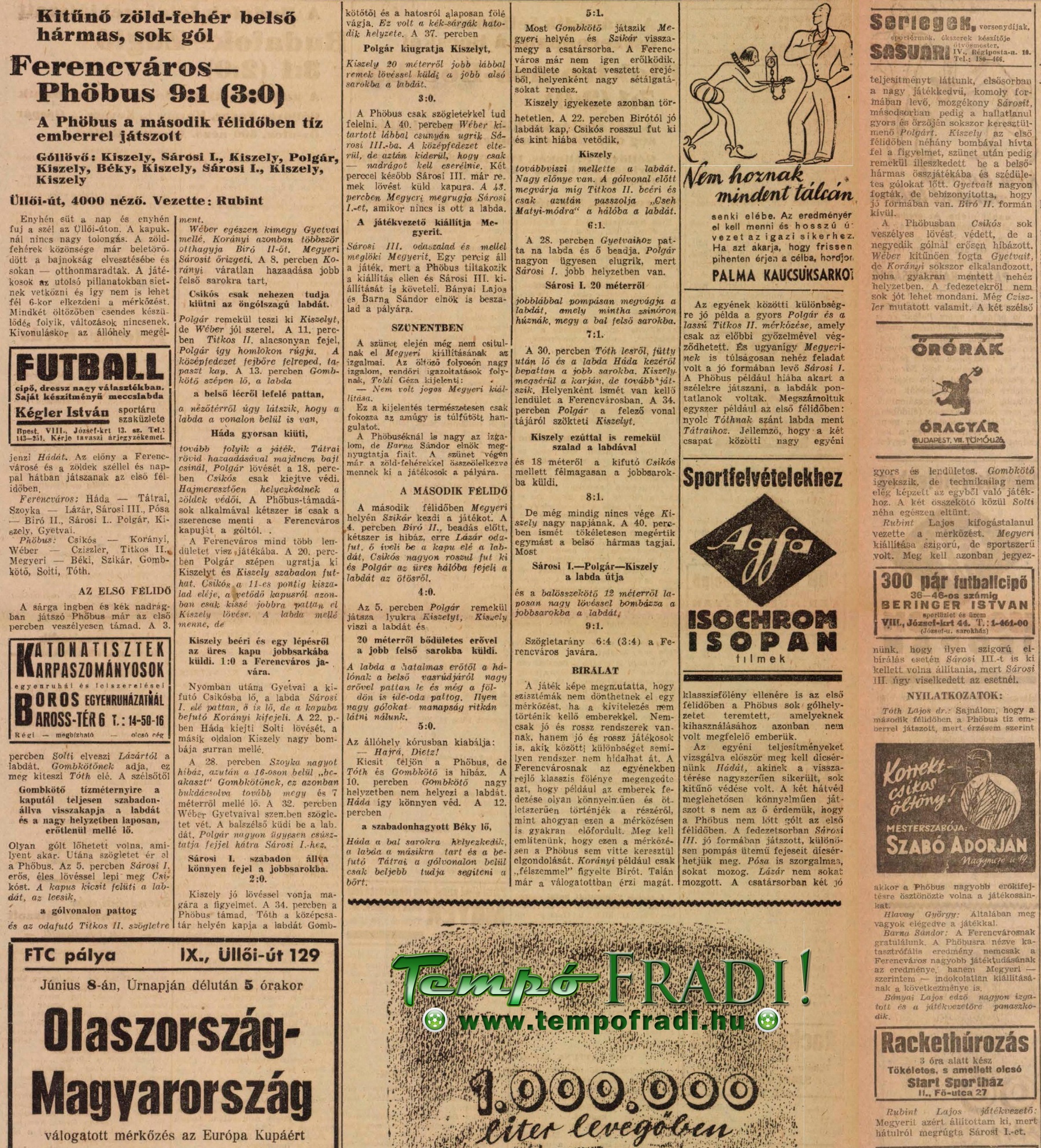 1939.VI.4. Ferencváros – Phöbus 9:1