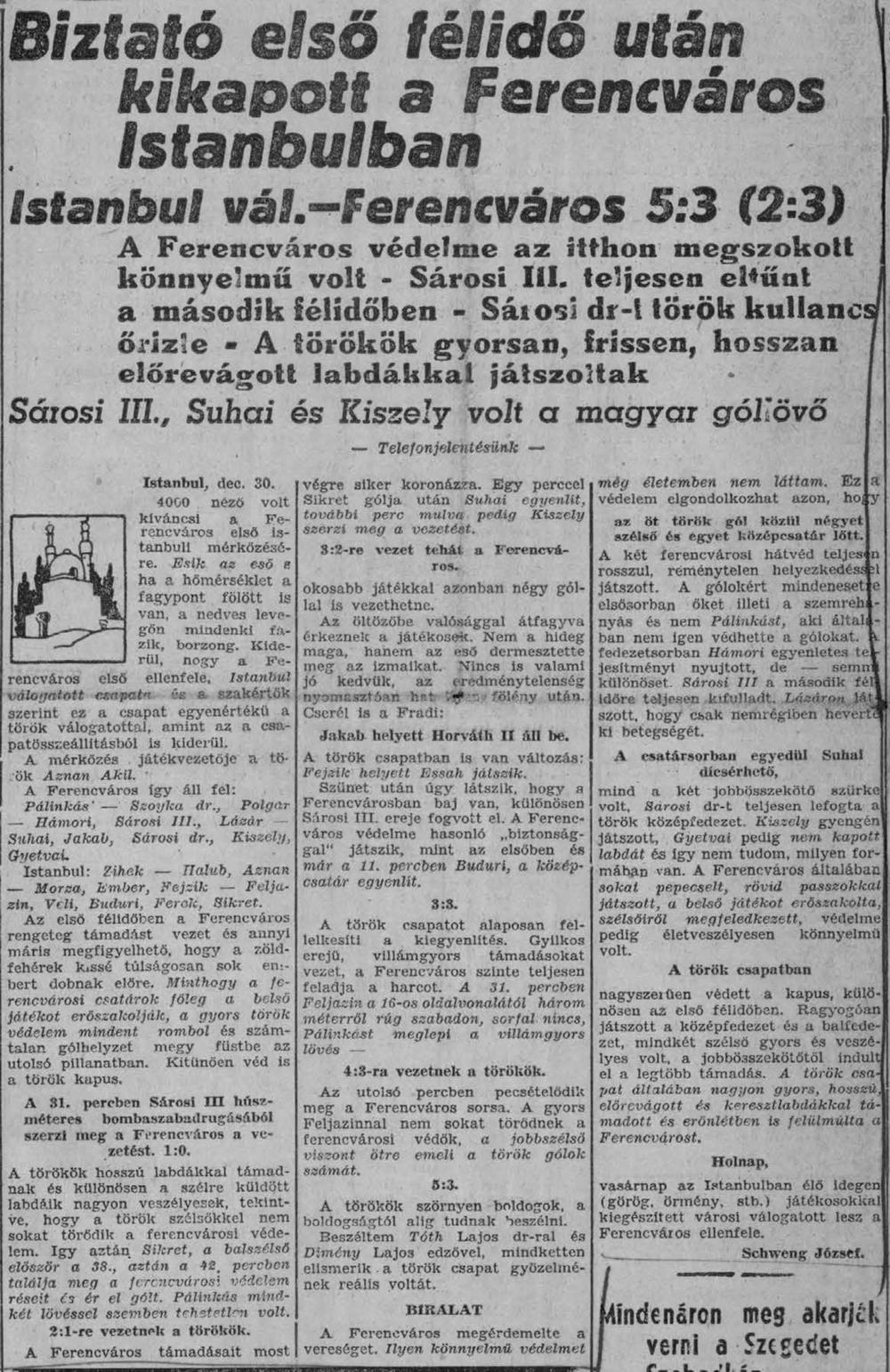 1939.XII.30. Isztambul válogatott – Ferencváros 5:3