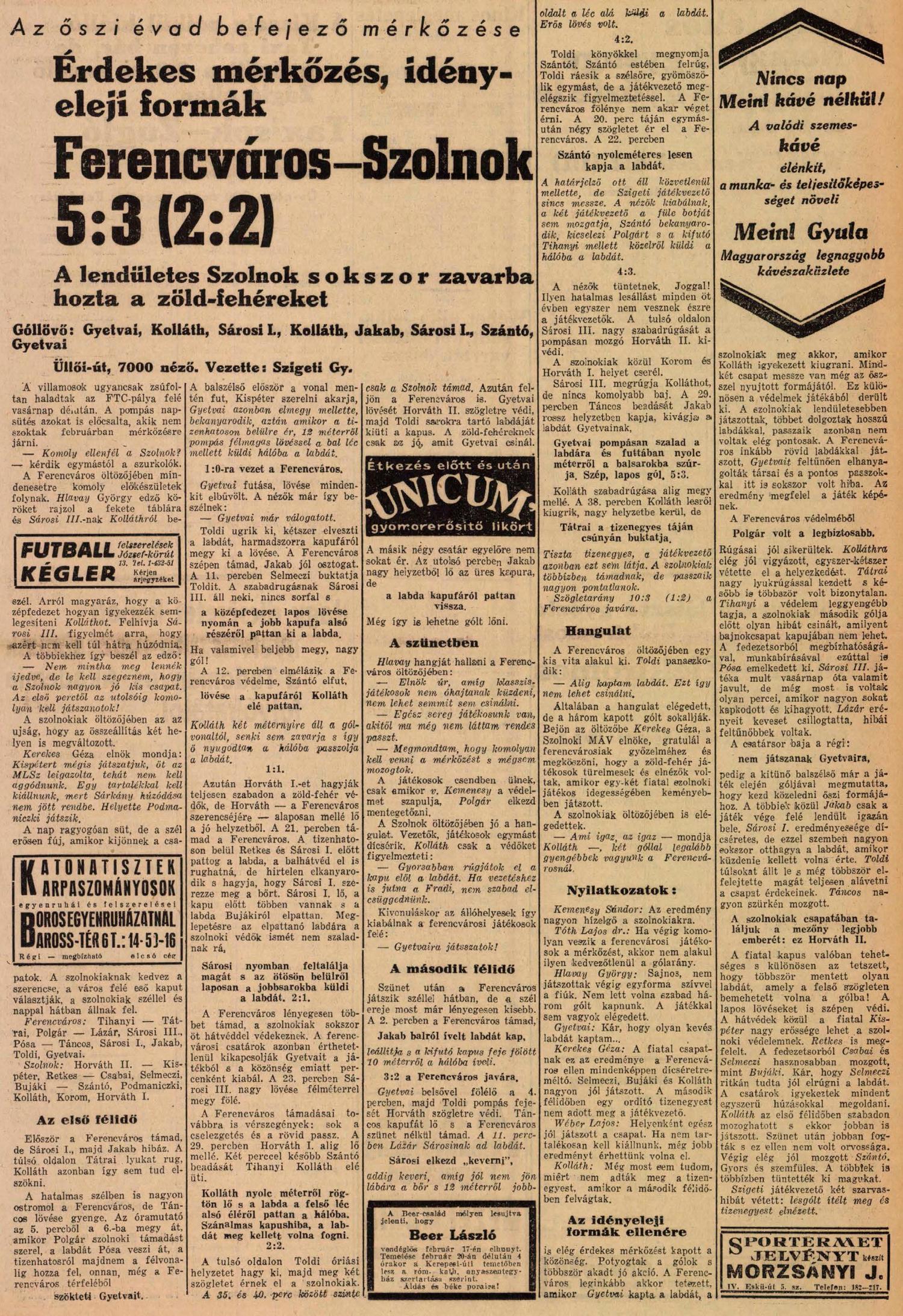 1939.II.19. Ferencváros – Szolnoki MÁV 5:3