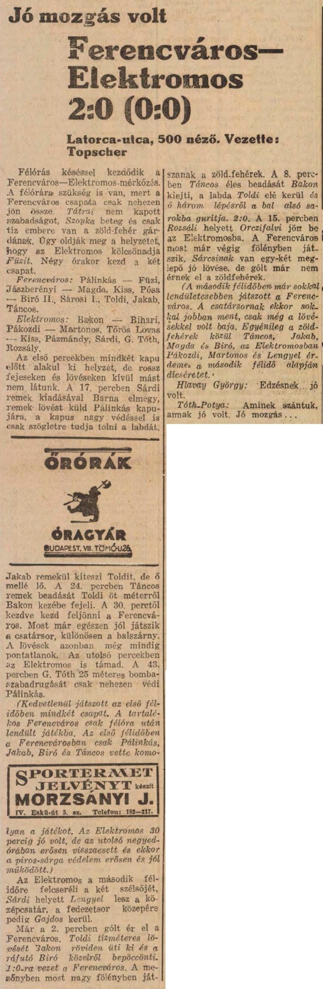 Kategória: 1938/39 | Címke: 1938/39, Biró Mihály Dániel, edzőmérkőzés, Elektromos, Toldi Géza, Tóth-Potya István