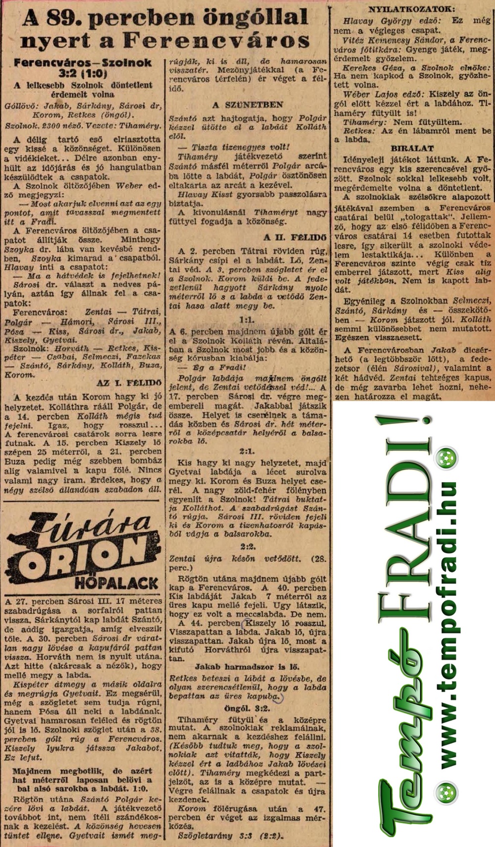 1939.IX.3. Szolnoki MÁV – Ferencváros 2:3