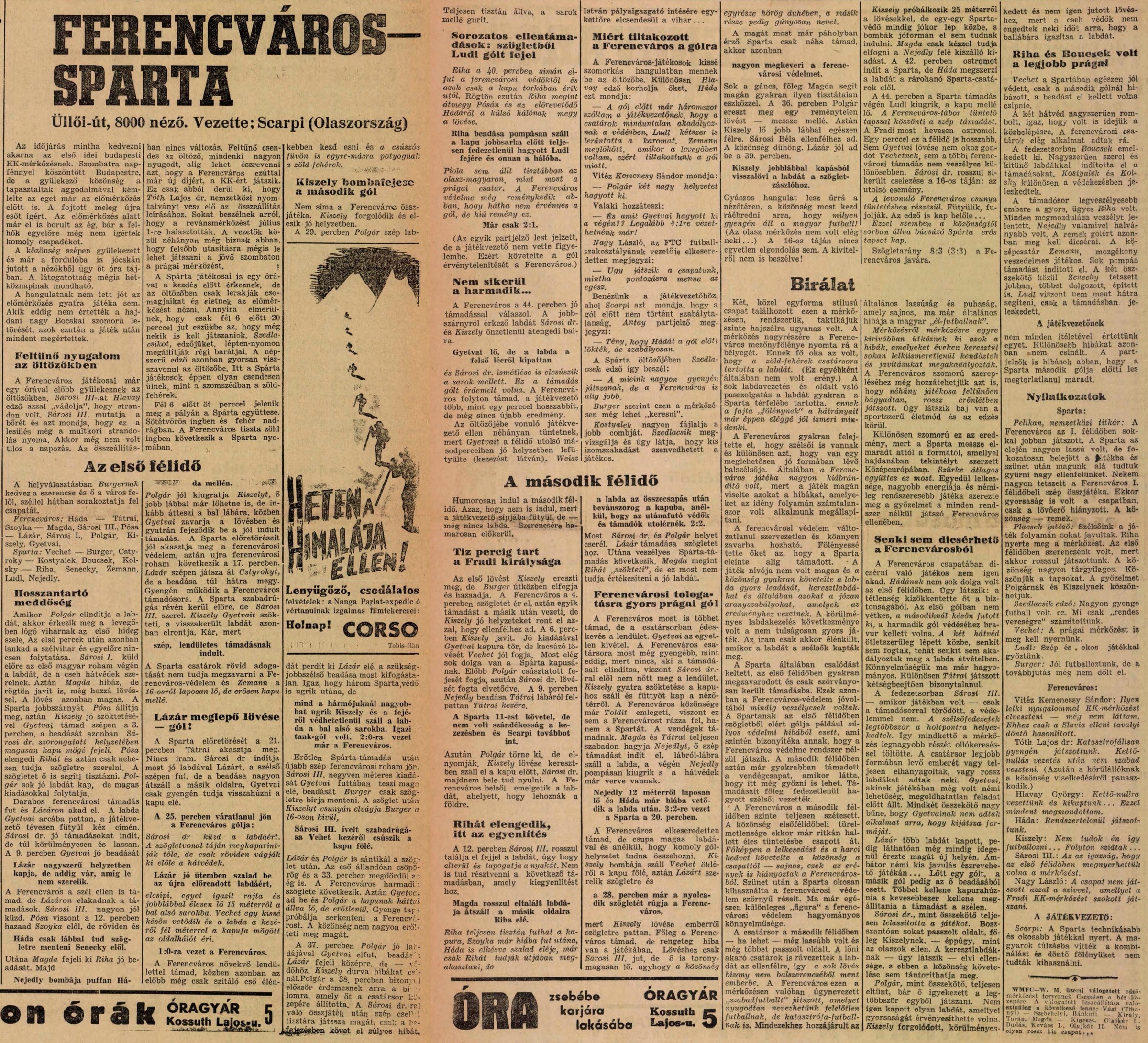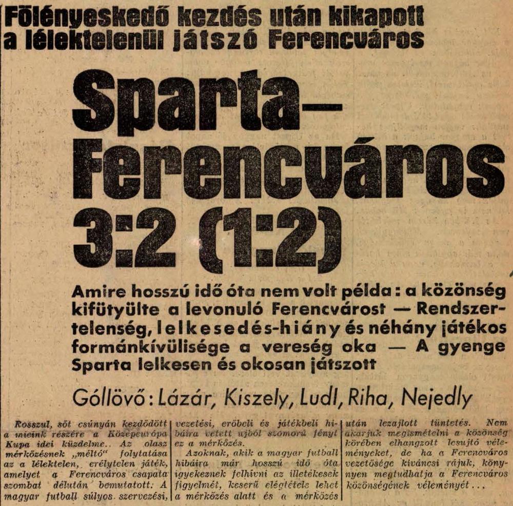1939.VI.17. KK, Ferencváros – Sparta Praha 2:3