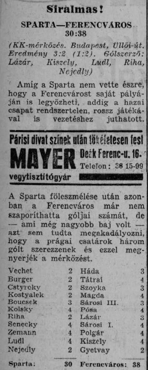 Kategória: 1938/39 | Címke: 1938/39, Kiszely István, KK, KK döntő, Lázár Gyula, Sparta Praha