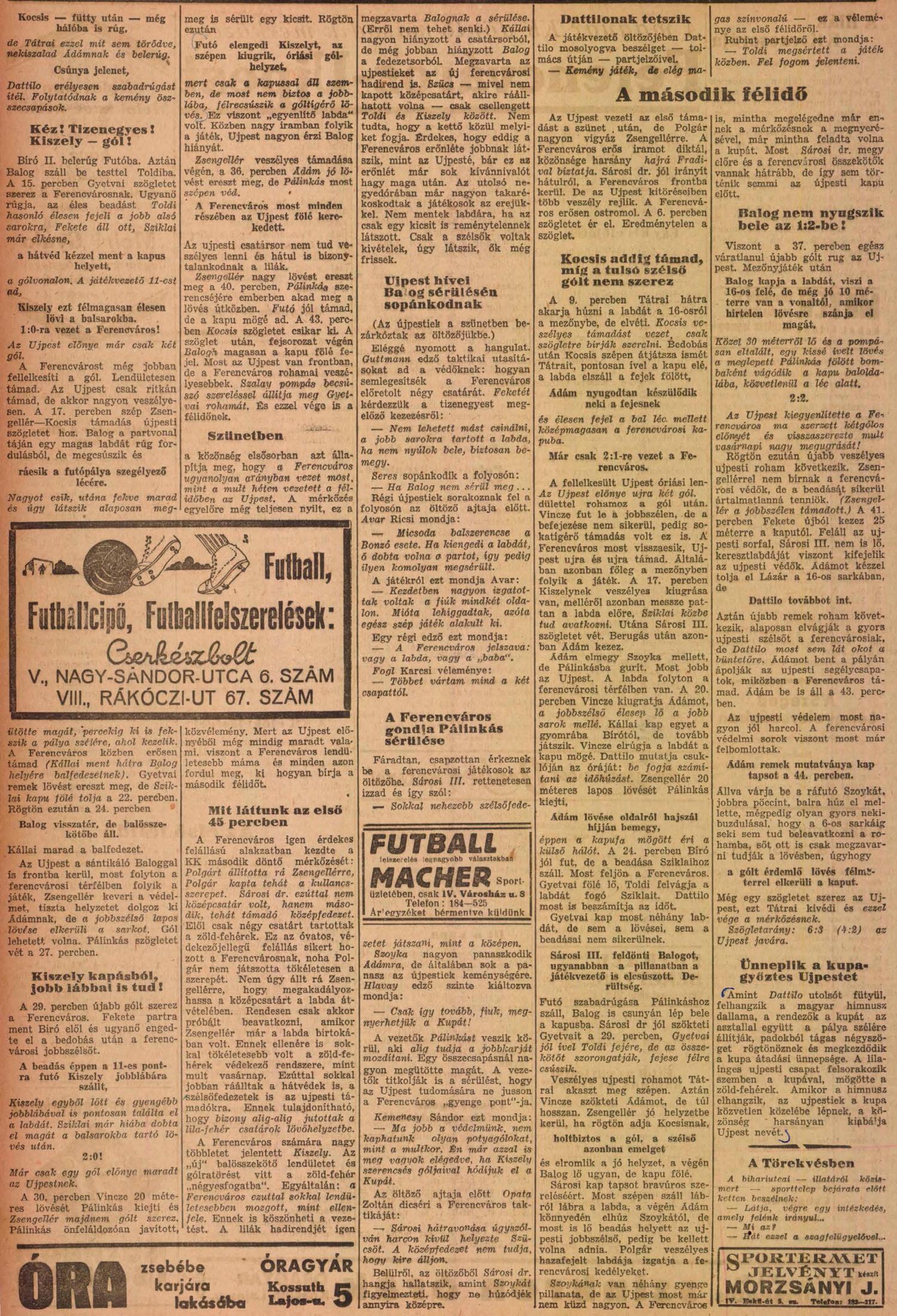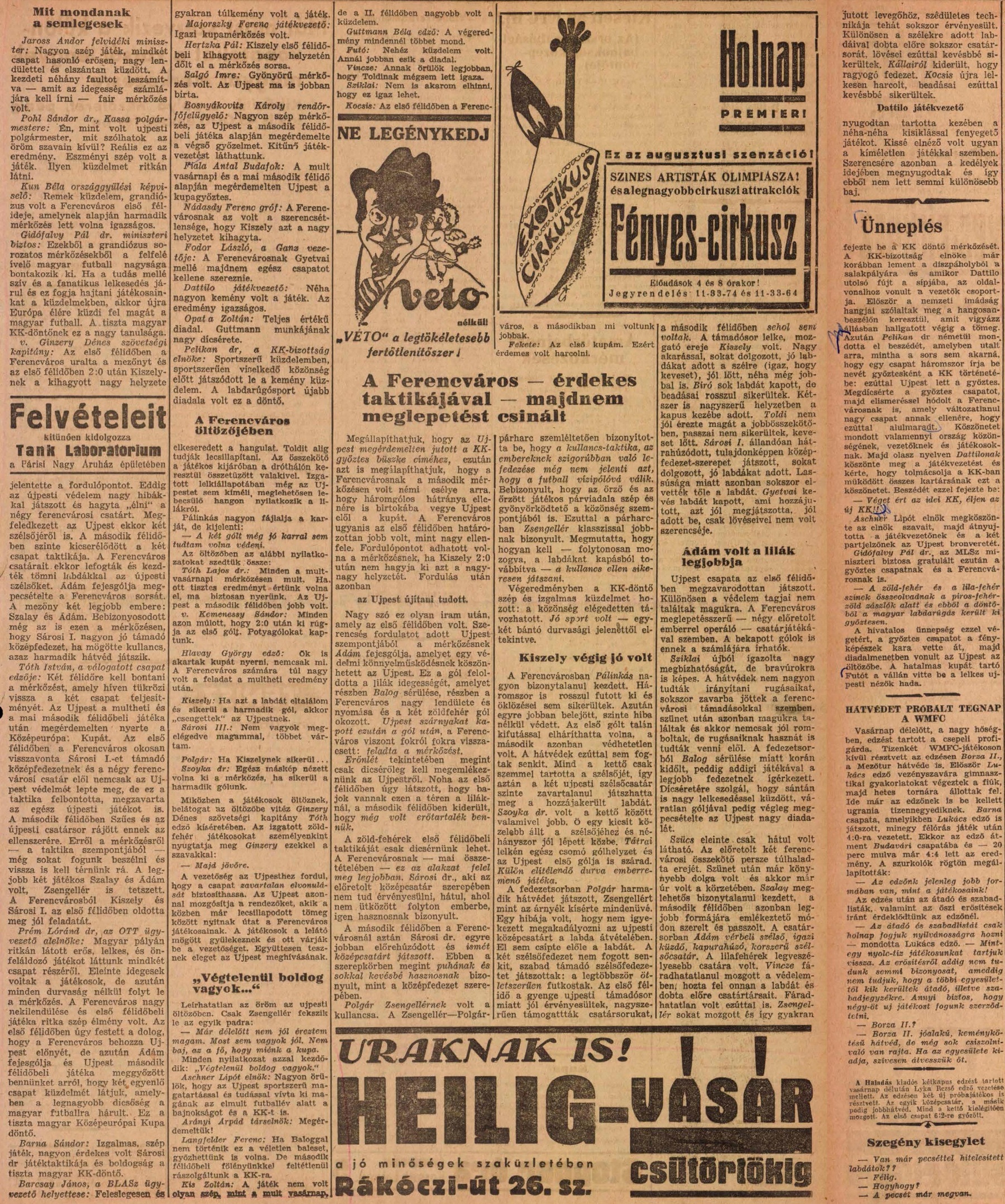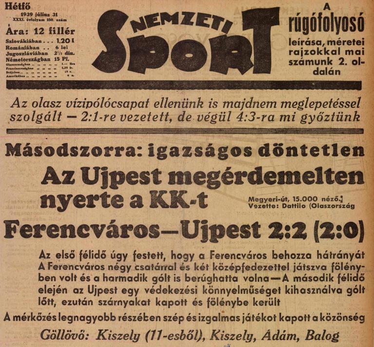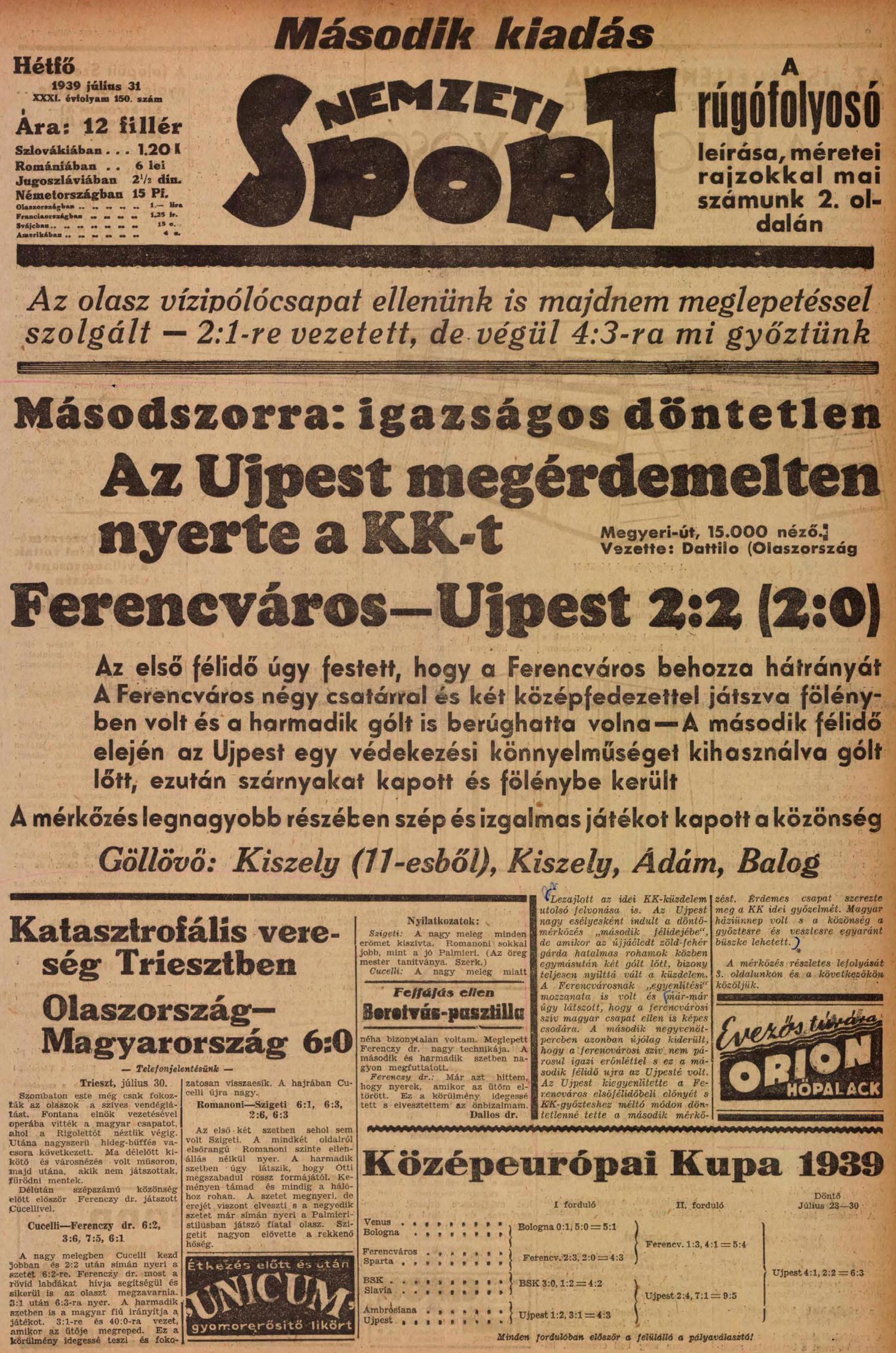 1939.VII.30. KK Döntő, Újpest – Ferencváros 2:2
