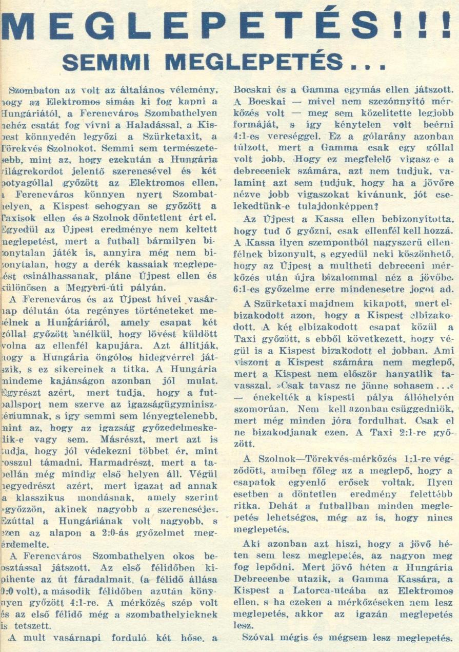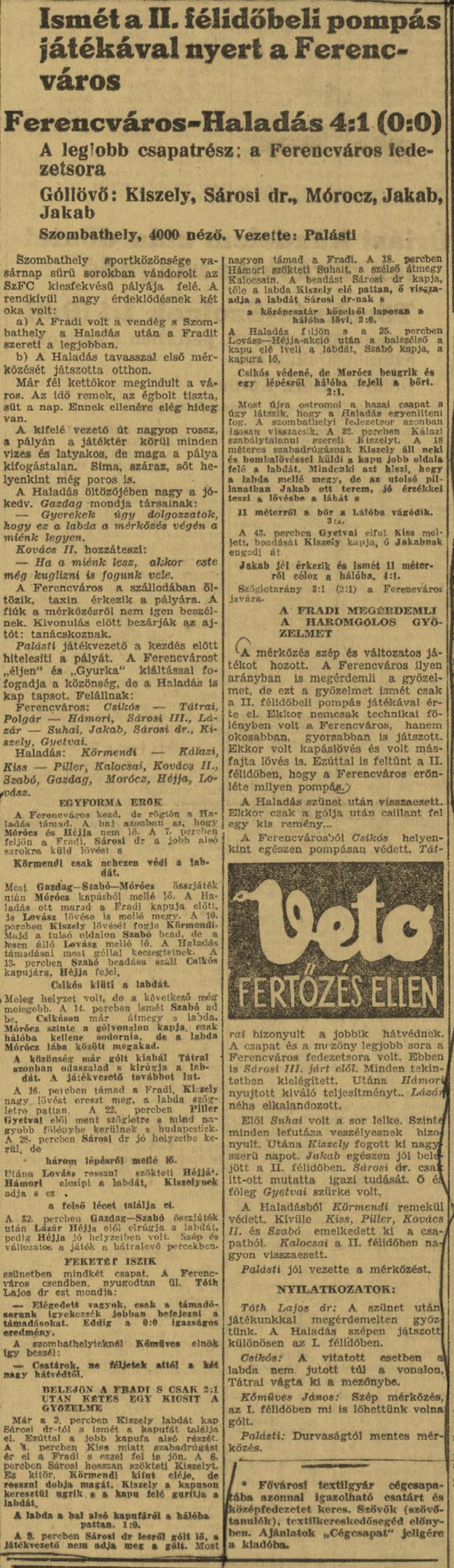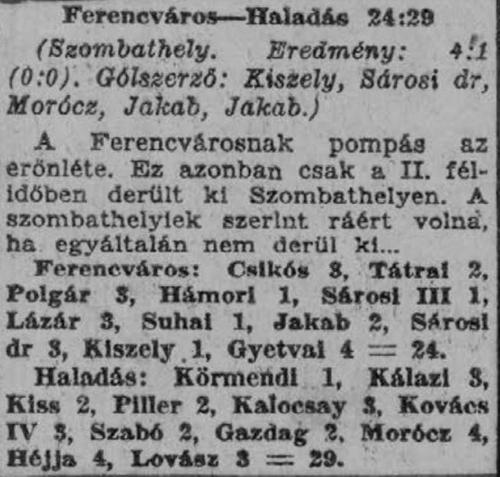 1940.III.3. Haladás – Ferencváros 1:4 Közzétéve: 2009. február 9. hétfő | Szerző: mjozef22 Ismét a II. félidőbeli pompás játékával nyert a Ferencváros Baumann ferencvárosi támadást hárít Vélemény, hozzászólás? Válasz megszakításaAz e-mail címet nem tesszük közzé. A kötelező mezőket * karakterrel jelöltük Hozzászólás * Név * E-mail cím * Honlap Δ
